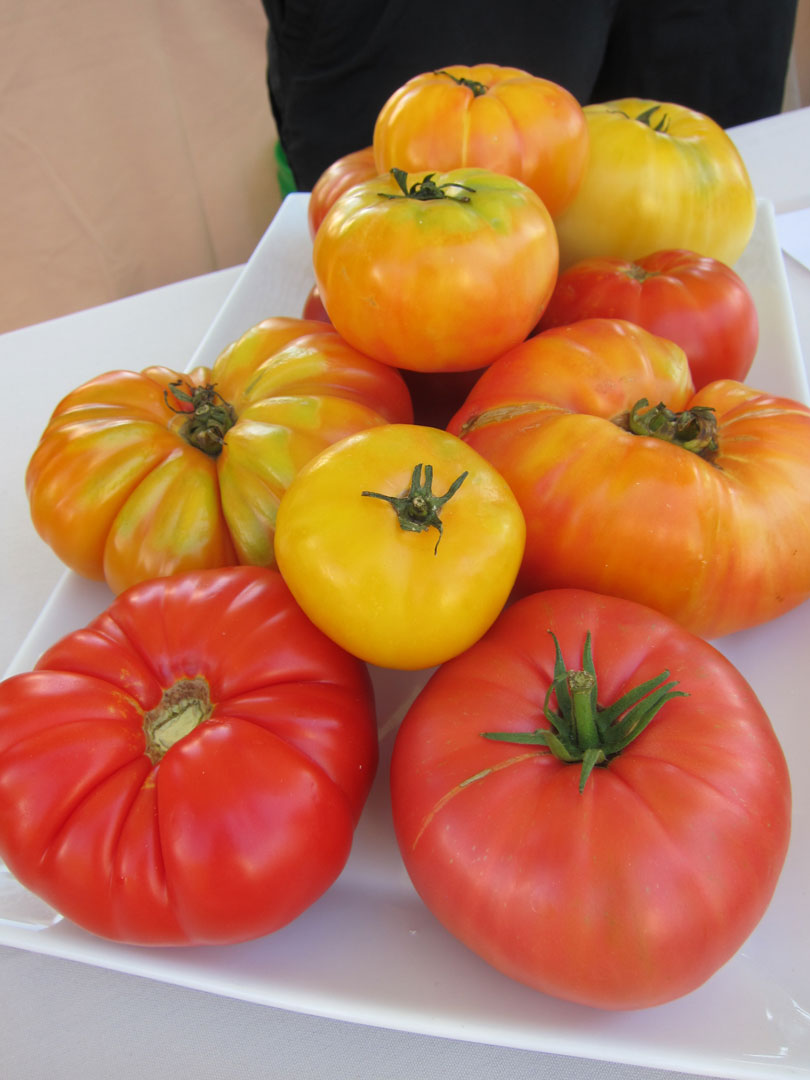 The next morning I was back in the gardens to attend the 20th anniversary of the Kendall-Jackson Heirloom Tomato Festival. Under Taylor’s supervision, the estate grows 3,500 heirloom tomato plants representing 150 different varieties. Under one large, white tent, each heirloom tomato type was on display and cut into tiny pieces for tasting with toothpicks. Guests were given paper sheets noting the different variety names organized by color. I made check marks near the ones I preferred. Top among my choices were Kelloggs Breakfast (orange), Orlove Yellow Giant (yellow), and Blue Ridge Mountain (purple). Other pavilions featured chefs who cleverly incorporated tomatoes into their recipes. Of course stations serving K-J wines were ubiquitous and on this 90 degree day, the Grand Reserve Rosé seems to be in everyone’s glass.