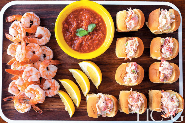 Lunch fixings included shrimp and mini lobster rolls from the Seafood Shop in Wainscott and slices of fresh watermelon.