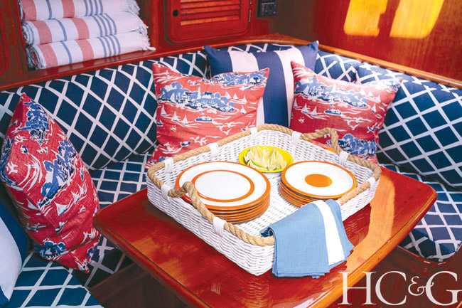 The boats were dressed to the nines in Serena & Lily’s fabrics and soft goods, as well as tableware and serving items.