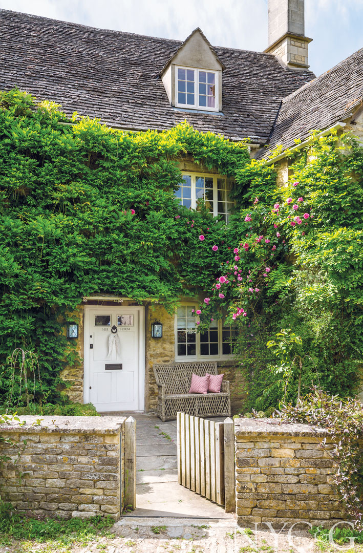 Wisteria and climbing roses blanket Sam and Isabella Branson’s late-17th-century home in the Cotswolds.