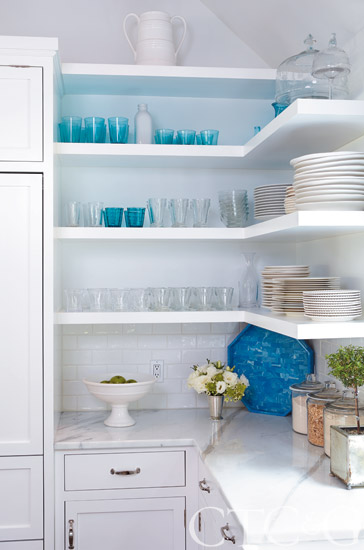 In the kitchen, cabinetry by Hemingway Custom Cabinetry sports polished-nickel hardware.