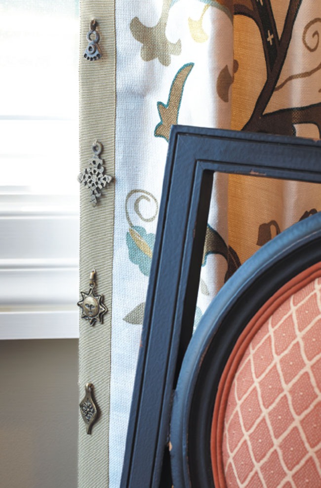 Capellini had decorative bronze charms sewn onto the library drapes.