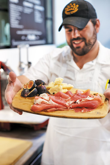 Executive Chef Patrick Lacey presents black figs, chunks of Grana Padana cheese, and delicious and sweet Prosciutto di San Daniele.