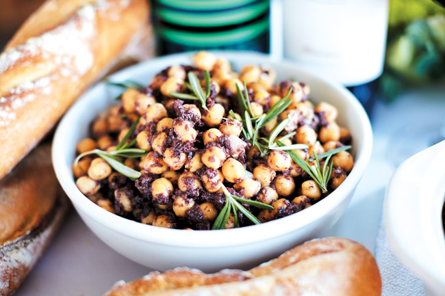A simple, yet elegant, ceci salad is made with chickpeas, black olives and rosemary.