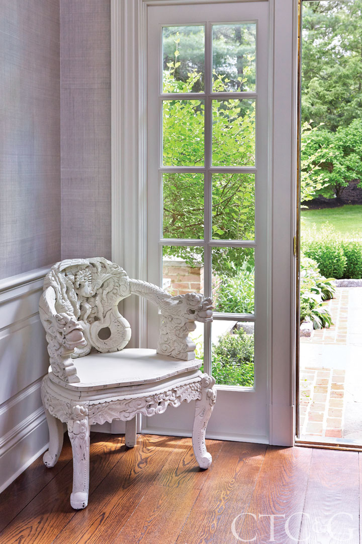 Hirsch fell immediately for the quirky carved chair at Stamford’s Antique and Artisan Gallery. The client followed suit.