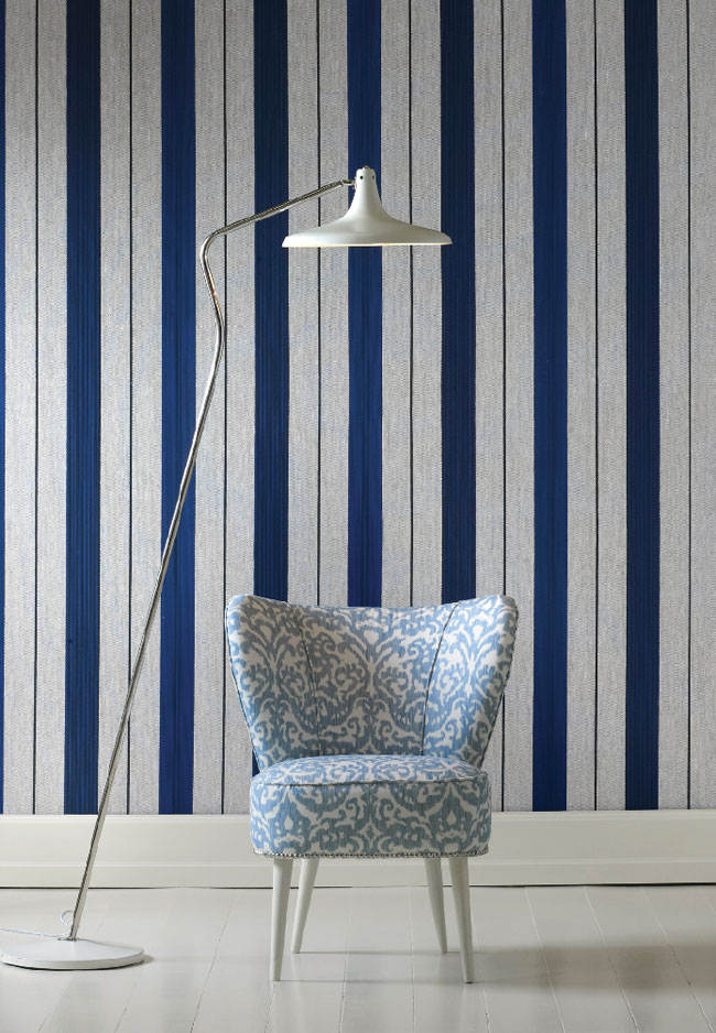 Shades of Blue | This Laris fabric from Dedar is crafted using the “imprimé sur chaine” technique, which creates a lighter impression and, in this case, a pleasing ikat effect. Through Jerry Pair & Associates (T), D&D, 212-546-9001, jerrypair.com, dedar.com.