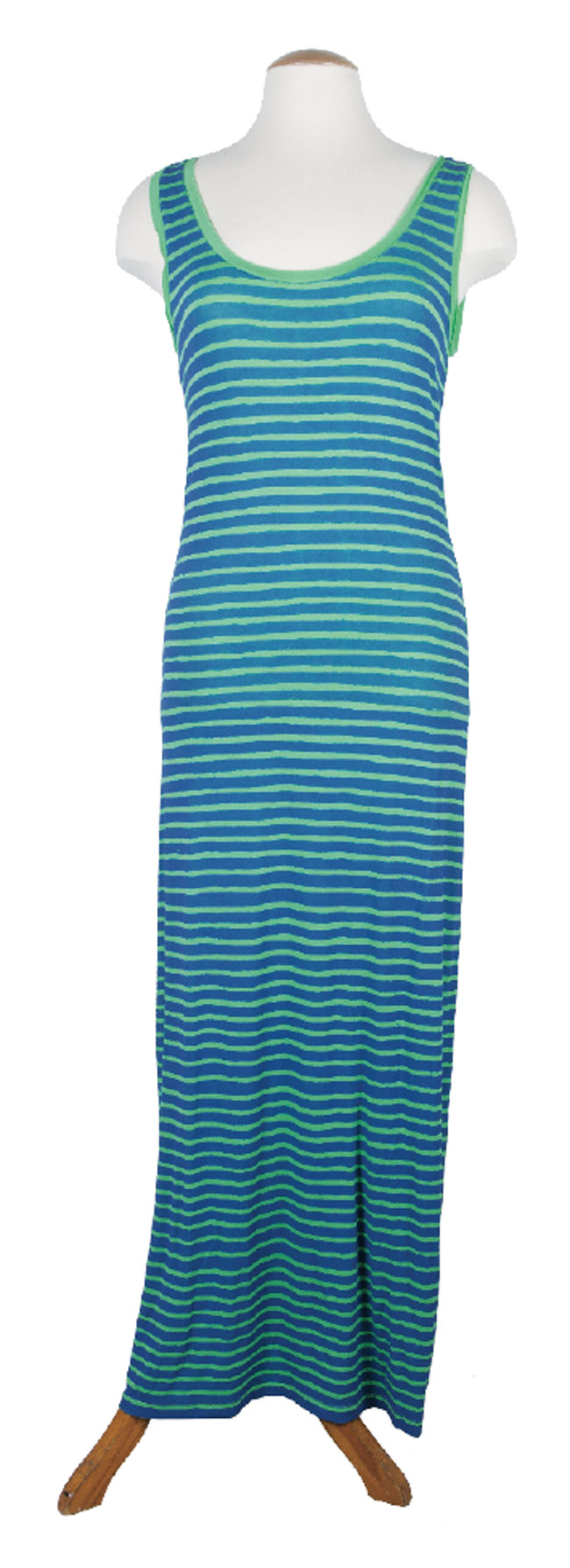 The Right Stripes | Straight from the Caribbean, this blue and green striped maxi dress from Hiho is resort-ready. Designed in Tortola, British Virgin Islands, the brand exudes island style. $98, shop.go-hiho.com.