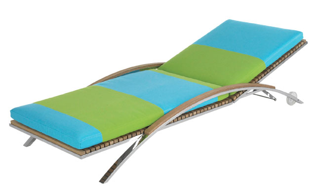 Laid Back | One of Link Outdoor’s latest editions, the Echo Low Chaise is on trend in the brand’s new fabric, Color Block in Spring. At 79-by-30 inches, the chaise is perfect for curling up or stretching out. From $1,225, through Hines & Co. (T), D&D, 212-754-5880, linkdesignsolutions.com.