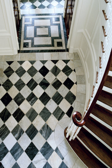 The Veneto re-works a classic Regency design in a truly original manner with a traditional frame in marble ornamented by contrasting convex orbs and diamonds to create an arresting effect. 646.840.0609 | chesneys.com