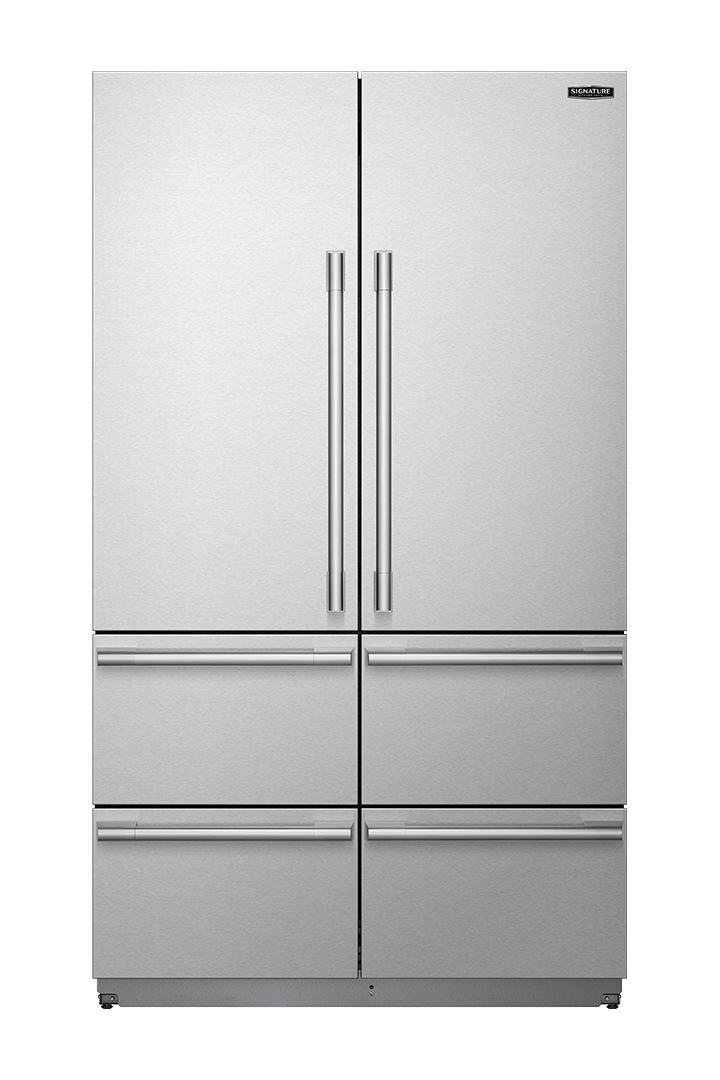 With impressive capacity, the Signature Kitchen Suite’s 48- inch French Door refrigerator includes the brand’s exclusive five-mode refrigerator/ freezer convertible drawer and dual ice maker with Craft Ice.
