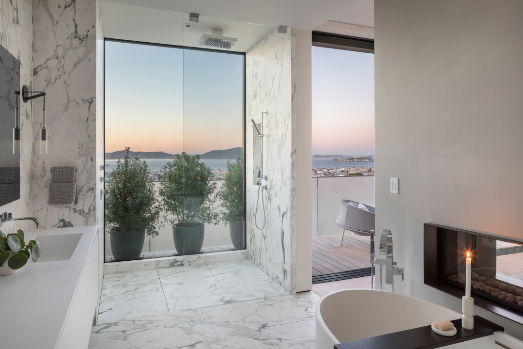 Located at 2646 Union Street, the home has 4 bedrooms and a whopping 7.5 bathrooms. While San Fran is known for its steep hills, this property is actually situated on a flat city block that’s close to the Presidio parklands, plus some incredible shops, schools, and restaurants. A new owner can effortlessly enjoy what’s near and what’s far. The open rooms offer stunning views of the nearby Bay, Golden Gate Bridge, and mountains. “It’s rare to have a location in San Francisco that offers both world-class views of the Bay and Golden Gate Bridge with walkability,” says listing agent Val Steele of Compass. And anytime something is rare, billionaires are even more likely to flock.