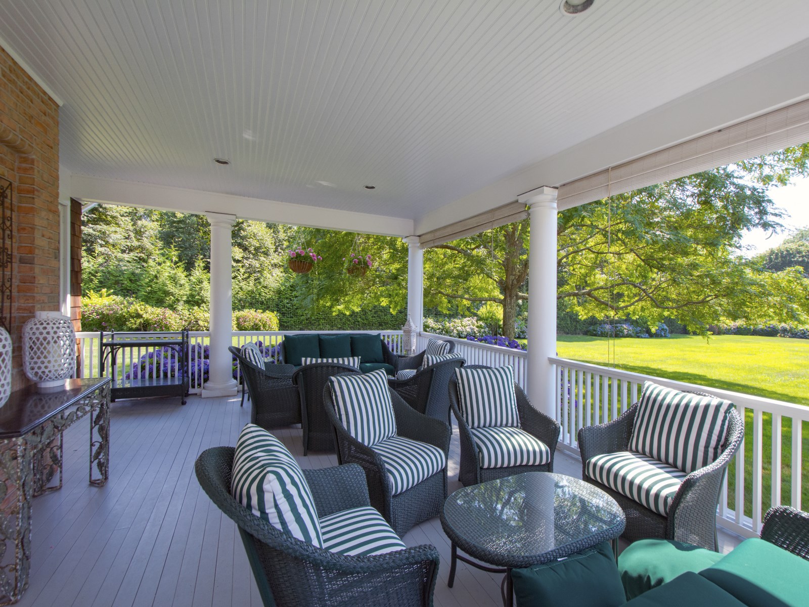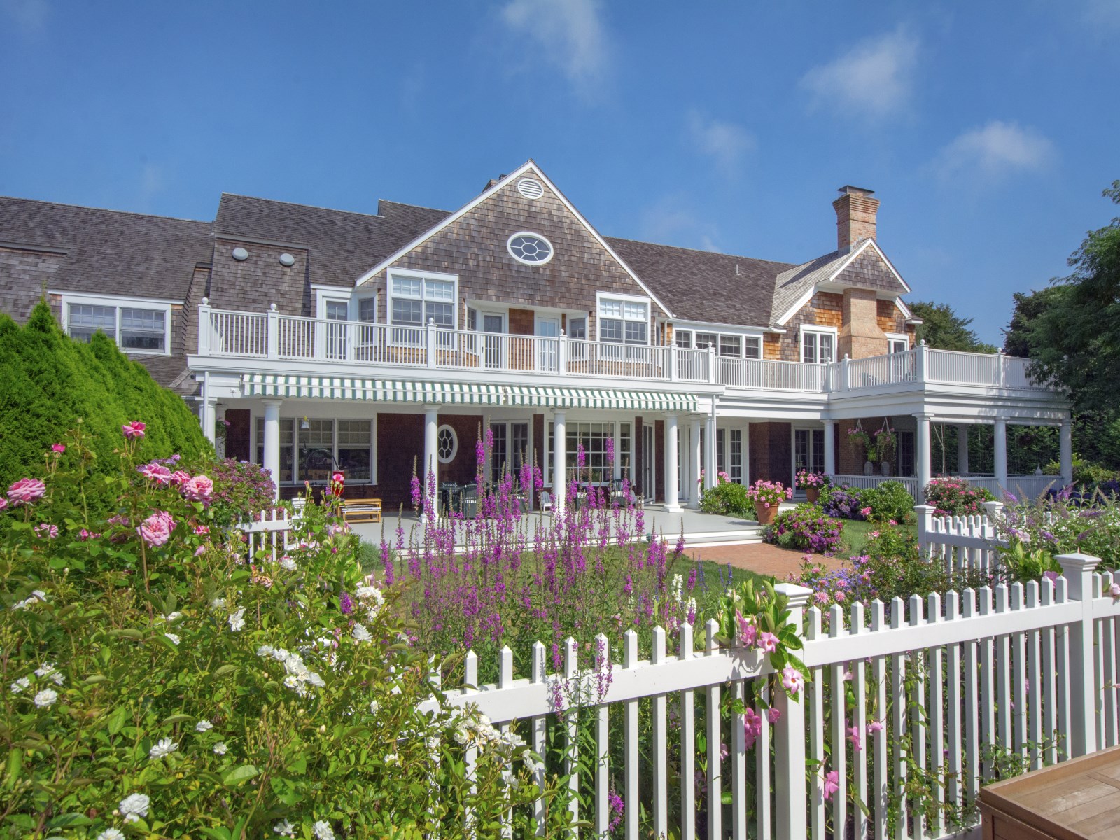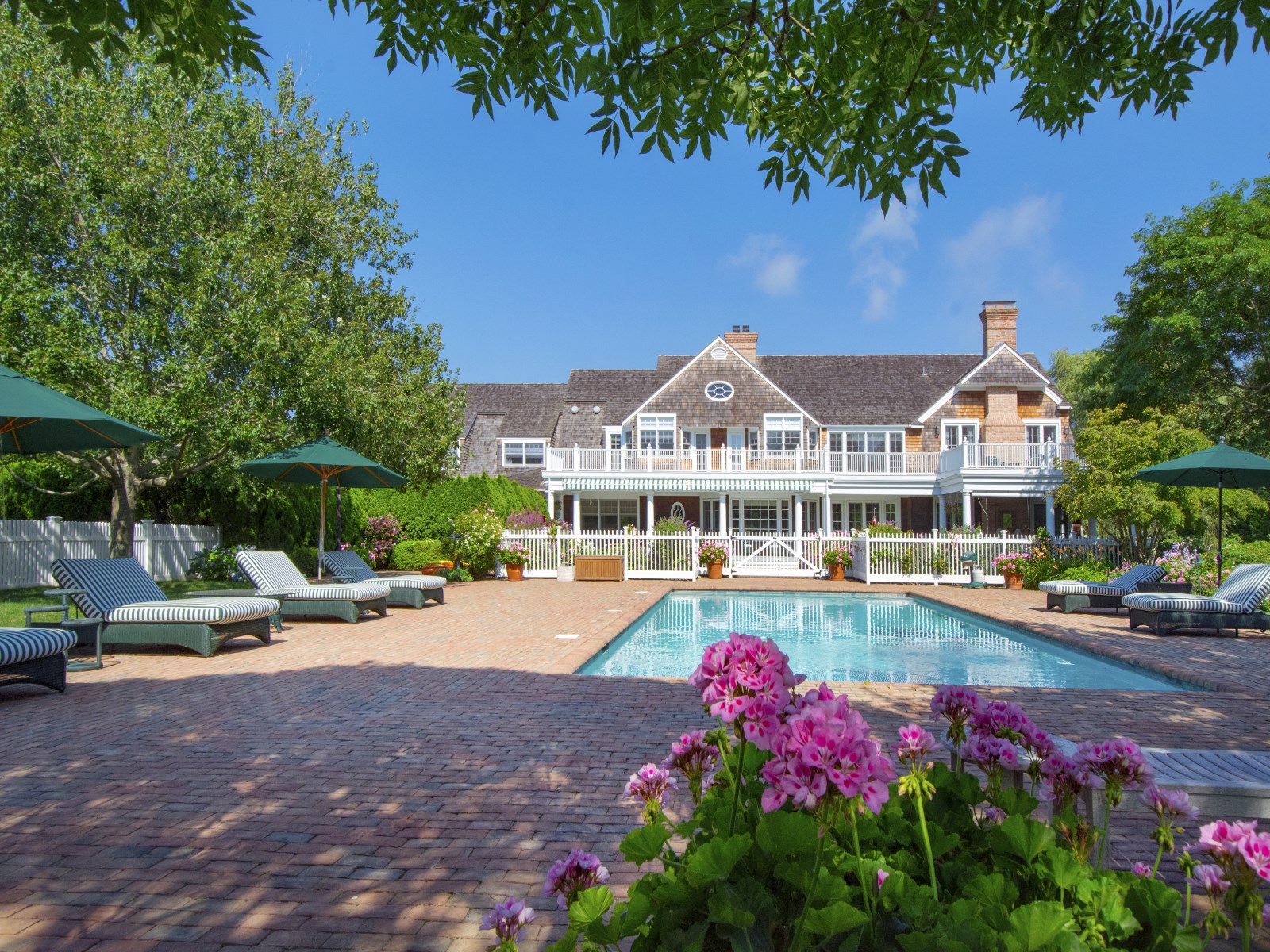 While there’s no putting green, the 3.25-acre property does come with a tennis court as well as a heated pool and separate guesthouse. The primary residence boasts a classic shingle-style façade with a covered front deck. The interiors span 14,000 square feet and house 12 bedrooms and 15 bathrooms. Additional interior highlights include a living room that accesses a covered outdoor living room and a well-appointed kitchen.