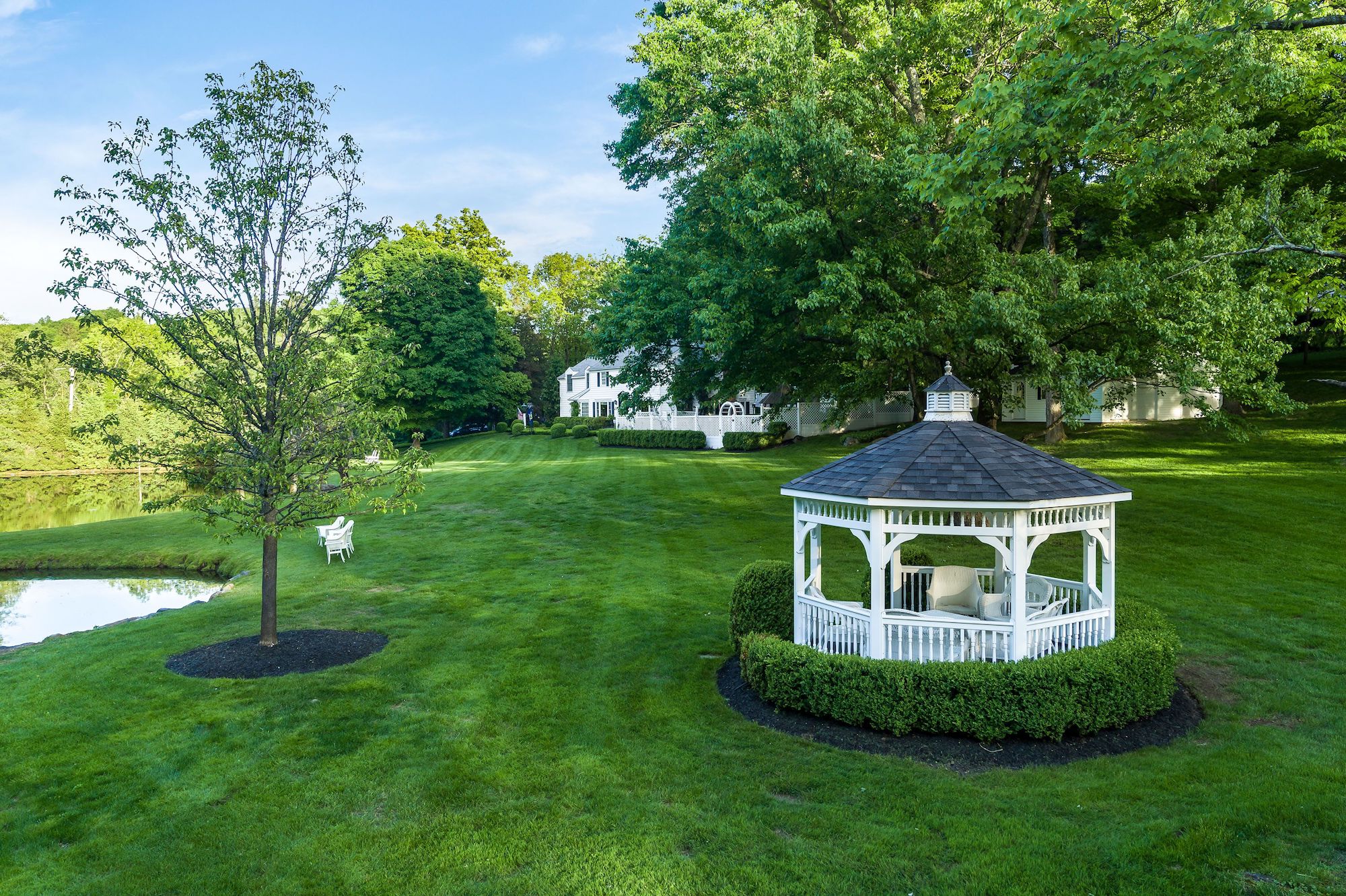 Just like many other parents with children out of the house, Governor Andrew Cuomo has listed his home in Mount Kisco, New York since the large size has become unnecessary. The empty nester and his girlfriend, TV chef Sandra Lee, are seeking $2 million for the special property. Located ironically on 4 Bittersweet Lane, the four-bedroom Colonial is incredibly charming and perhaps difficult to say goodbye to.The three acres estate boasts tons of towering trees and a picturesque pond, making for the perfect home outside of New York City. Cuomo surely enjoyed coming home to this tranquil haven to decompress after hectic days in Manhattan or unwelcome news, like when Amazon canceled plans to have a second headquarters in the Big Apple last year. Whether the new owner is a commuter or not, there’s not denying that the home’s location is ideal.Built in 1950, the 4,129-square-foot house has plenty of original details and modern luxuries. Marble countertops in the bright white kitchen add sleekness to the traditional interiors, but you may be even more surprised to see the glamorous outdoor spaces that await beyond French doors. As well as a grill and dining area, there is grand outdoor fireplace surrounded by plush seating. A little further out in the vast backyard, a gazebo overlooks the pond, making it the most relaxing reading spot on the property by far.Harriet Libov of Houlihan Lawrence has the beautiful listing, which 6sqft first reported is for sale.