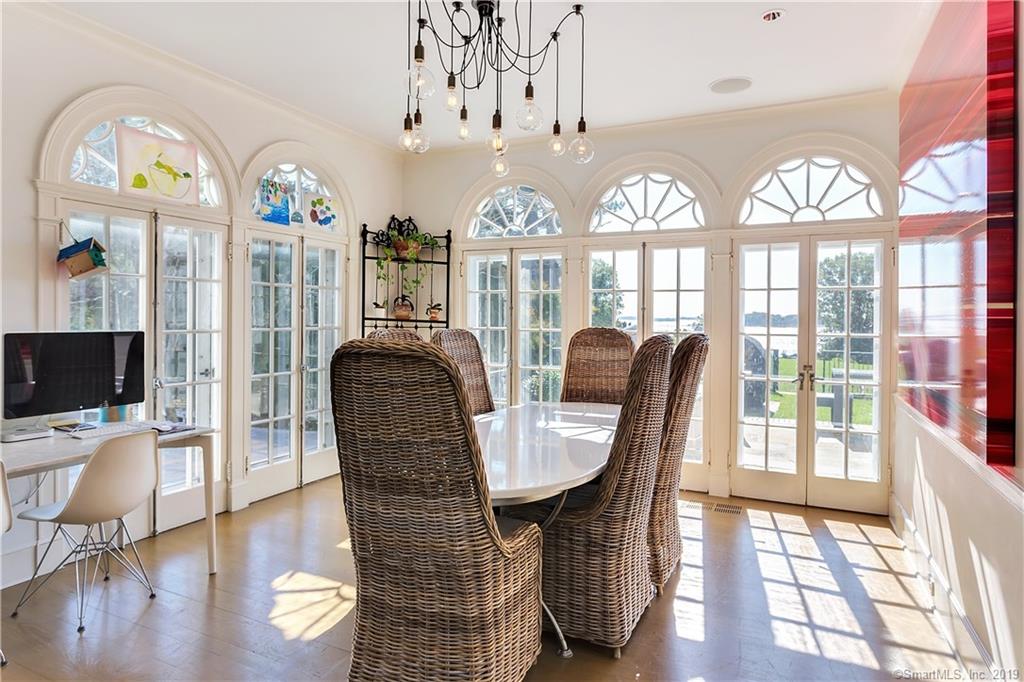 With September and school right around the corner, summer is indeed coming to a close. But there is still time yet to snag a waterfront spread for a last-minute Labor Day affair with a striking Greenwich estate. Located in the Belle Haven neighborhood, this lovely property is listed for $21 million and sits on nearly four acres and 375 feet of access to direct water, offering weeping views.A Georgian Colonial constructed in 1915, and heavily renovated since, the home spans four levels and 10,000-square-feet of interior space, offering nine bedrooms and 8.5 bathrooms. The classic, white-and-black exteriors leads into similarly subtle, refined living spaces complemented by pop art-adorned walls and silky, slinky carpets spread across the hardwood floors.The landscaping is no less immaculately elegant. A sprawling golf practice green and fenced-in flower garden sit beside a swimming pool, which itself overlooks the water. The indoors meld with this unmatched utopia via a series of covered terraces and verandas on the lower two levels. For more information on this peerless property, Christopher Finlay of Halstead has the listing.