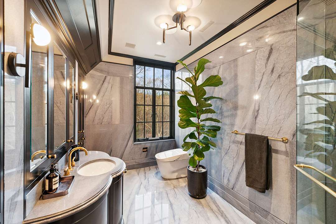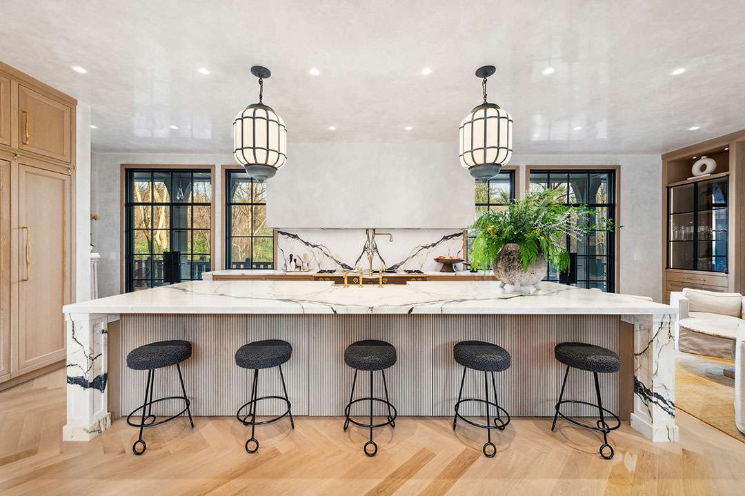 The gracious yet cool and imaginative interiors are the vision of designer Amy Aidinis Hirsch, a Greenwich native herself. She is no rookie to transforming homes of this size, and has been featured in CTC&G multiple times. You can check out a 12,000-square-foot Georgian-style brick house she designed and a large shingle-style residence, for example.