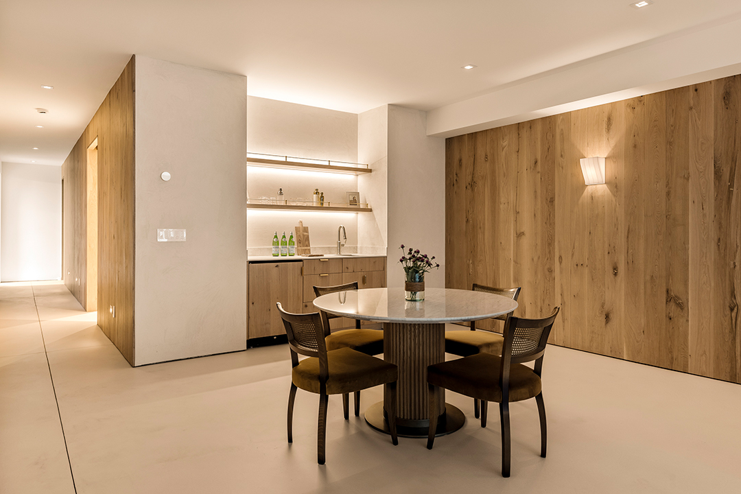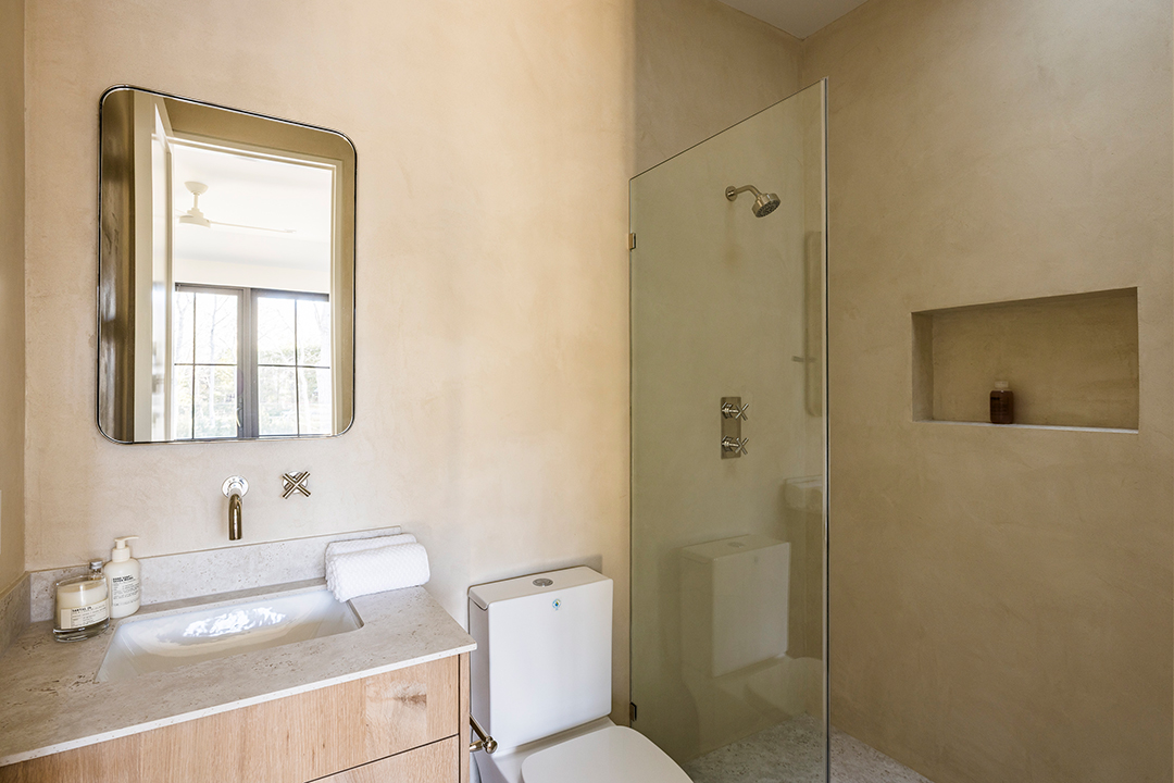 Unfolding on a .55-acre lot across from the protected waters of Three Mile Harbor, and situated in the idyllic community of Hampton Waters, the home is already desirable for its location. However, it’s organic wood-clad interiors and quiet luxury finishes are what push this place over the top.