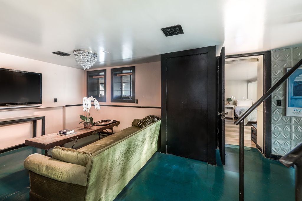 The Kirke family, all of whom excel in creative fields, have enjoyed their home on Gardiner’s Bay for a decade. The 2,000-square-foot pad boasts a private beach, a Cedar soaking pool on the back deck, and an outdoor shower on the balcony of the master suite, according to Curbed. An open room on the main level includes the kitchen, dining area, and living room. The space is enhanced with French windows and doors that offer uninterrupted ocean views from any vantage point.