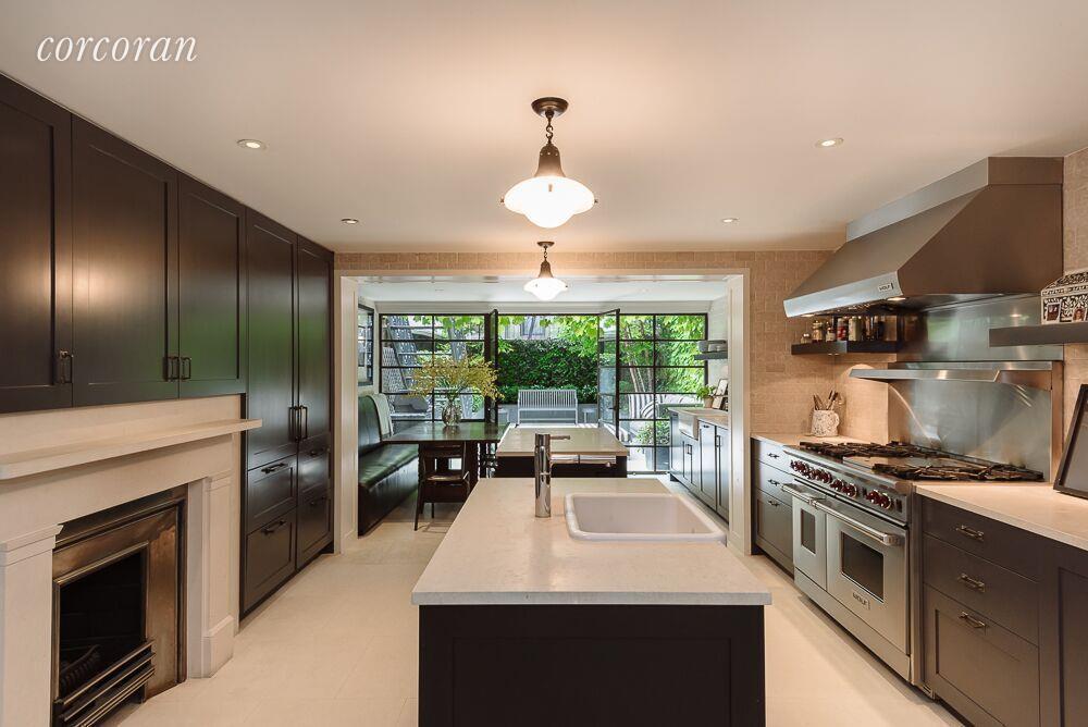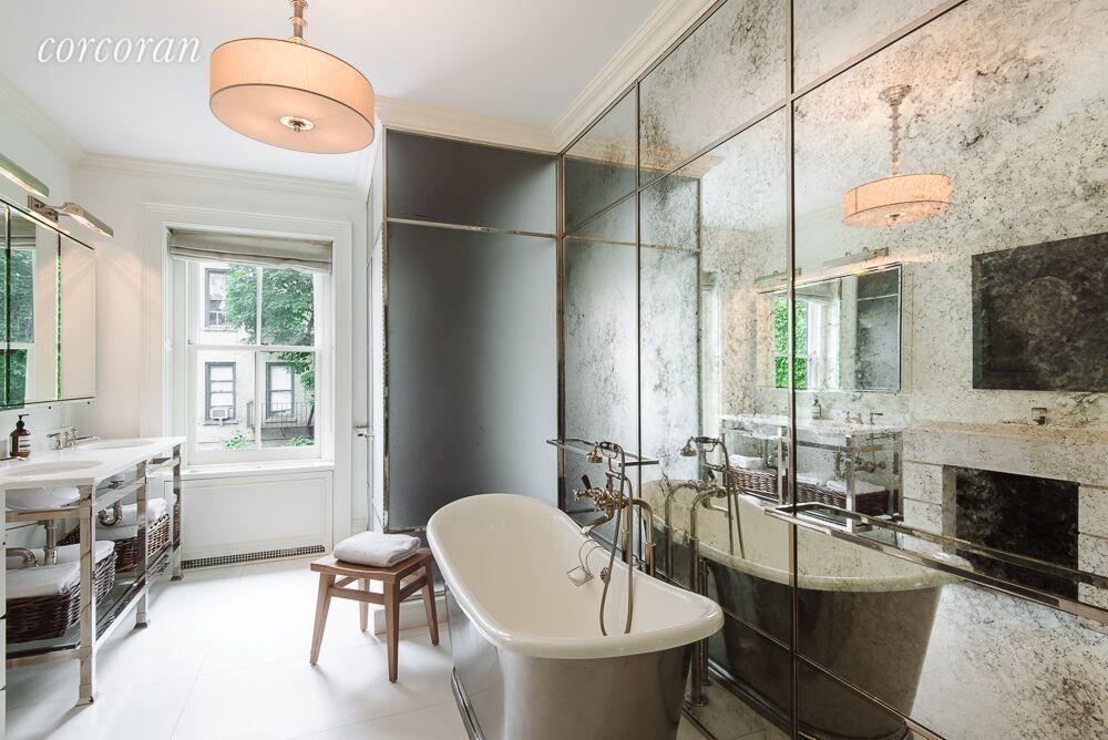 Recently renovated, the 3,336-square-foot home features a brand new kitchen with limestone flooring and floor-to-ceiling casement windows that access the garden. A living room with restored original woodwork and a library/media room with a terrace are found on the parlour floor, which features 11’ ceilings that give it a loft-like atmosphere. The upper levels house the sun-soaked bedroom suites including the master, which has a dressing room large enough to double as a home office. Billed as the “perfect home in Greenwich Village,” the townhouse is located on tree-lined Charles Street, which is the quintessential Village setting close to the shops and restaurants of Greenwich Village.