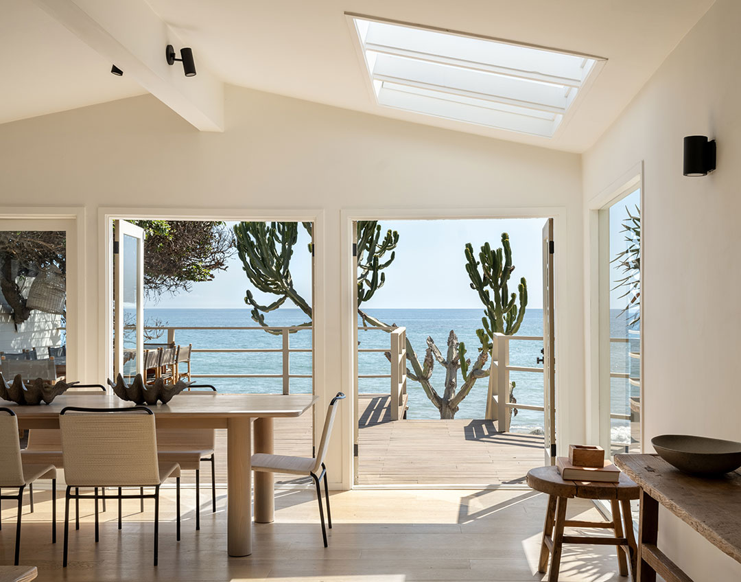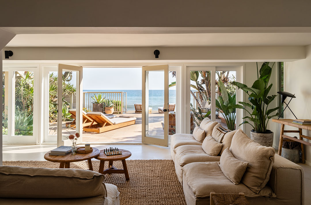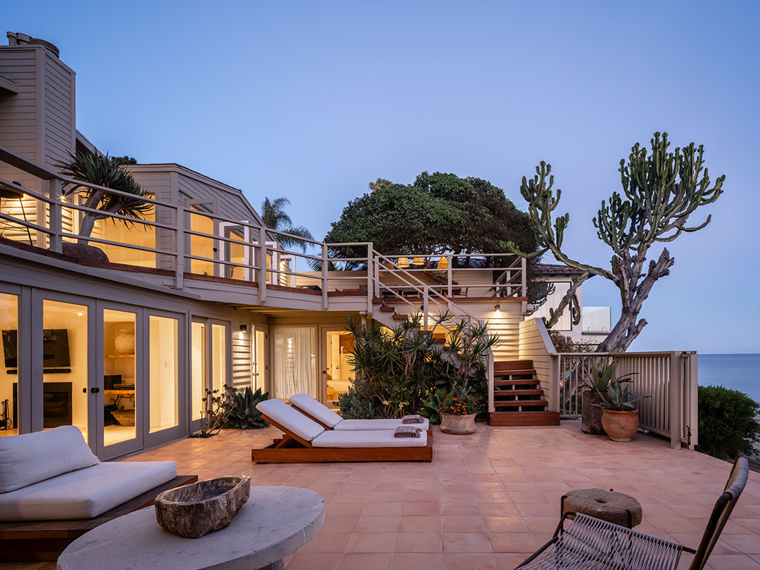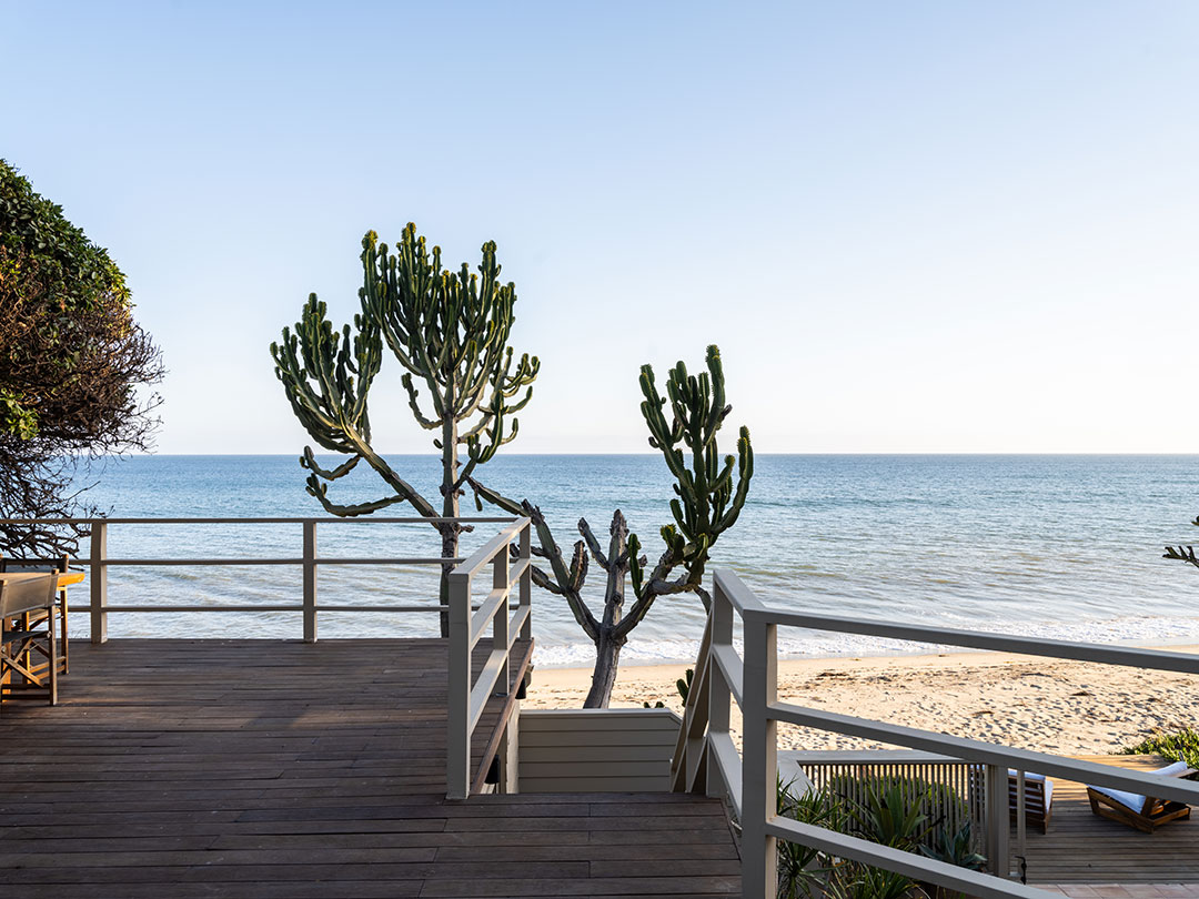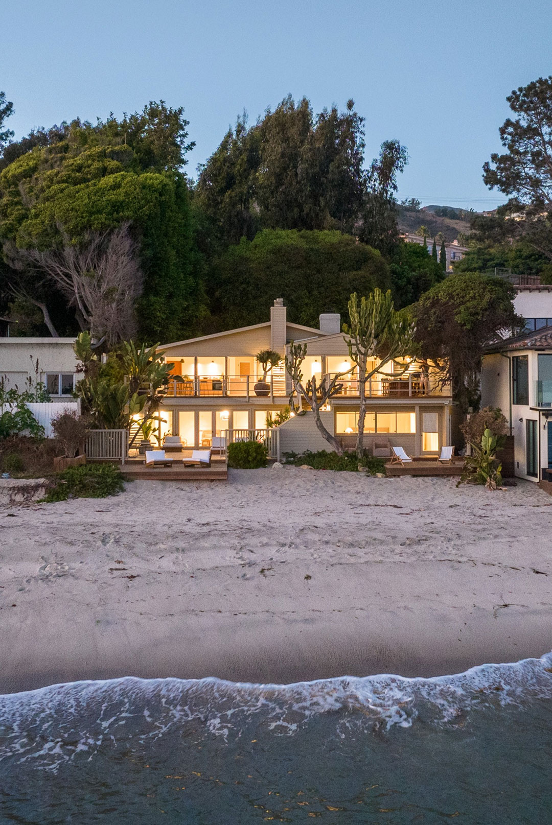 The property spans 58 sandy feet of Escondido Beach, fulfilling a real California fantasy. On rainy days, the home offers 3,861 square feet, with four bedrooms and three-and-a-half baths, to spread out across.