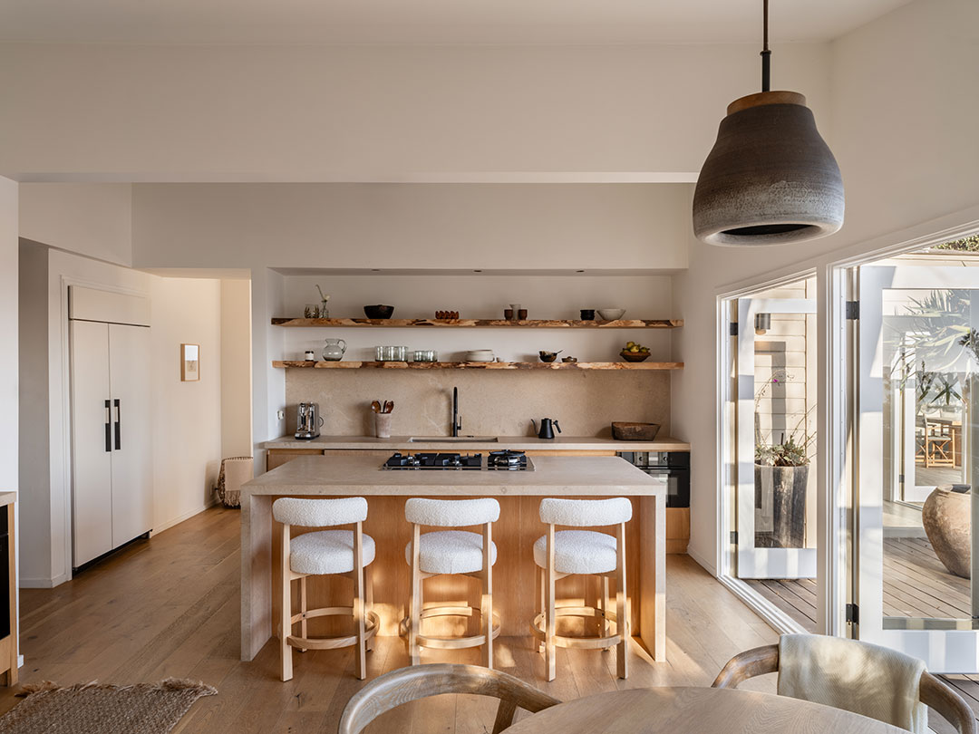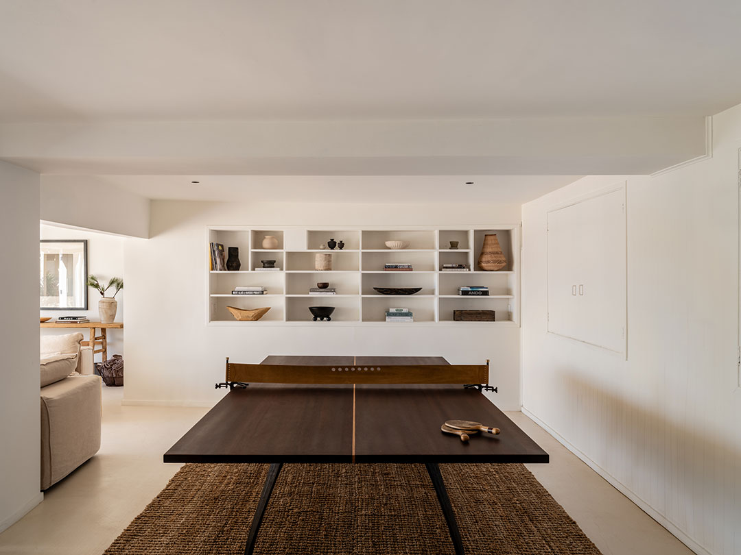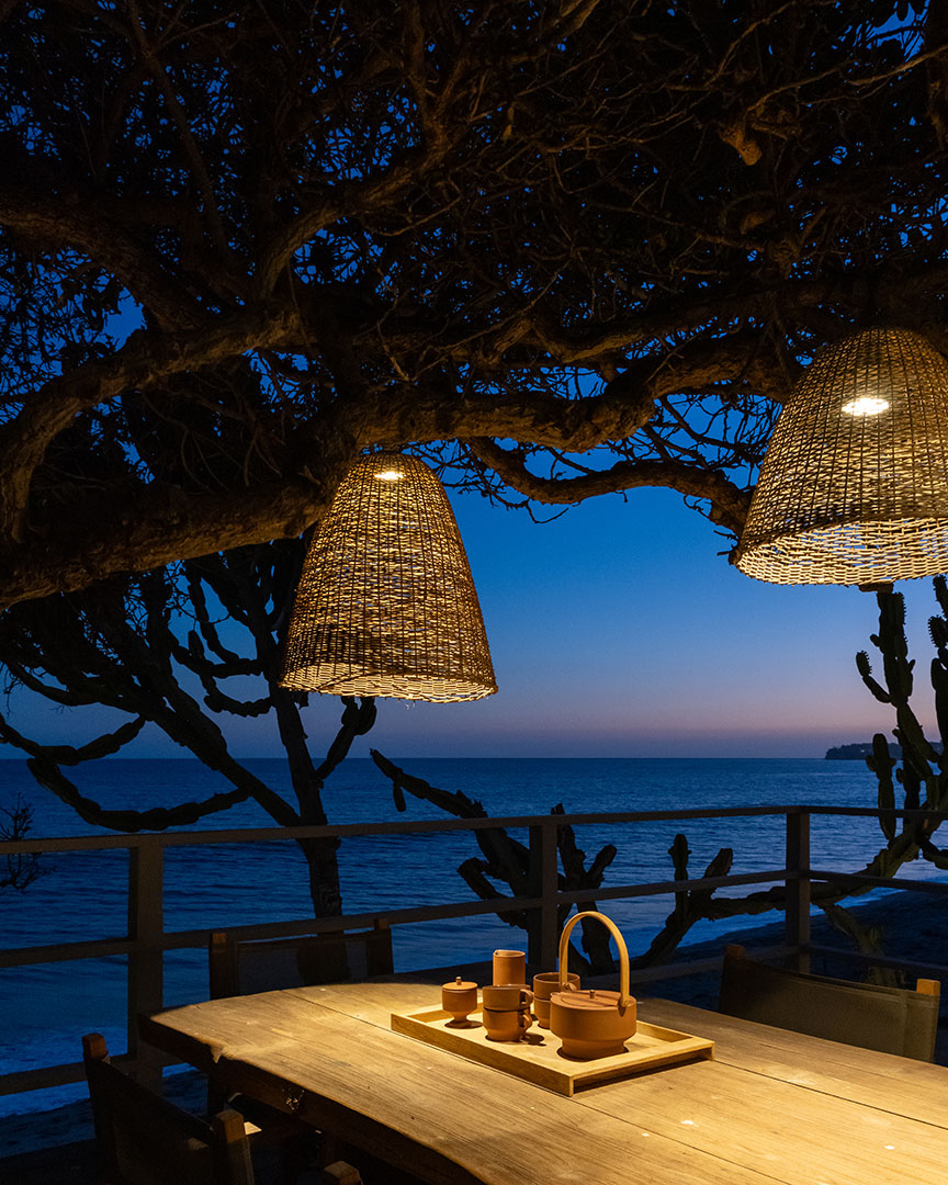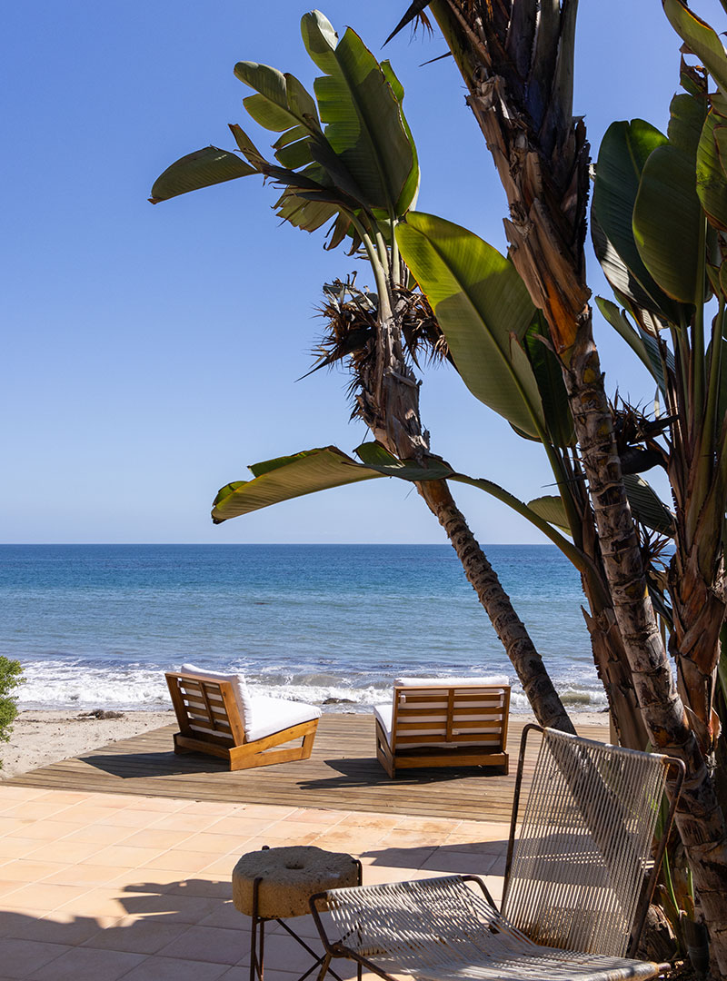 Its airy interiors are defined by simple, nature-inspired elements and textures. Neutral tones offer a clean yet comfortable look, without taking away from the property’s shining star: The view. Walls of doors and windows line the back of the house, revealing the movie-like beach scenery. It’s easy to swing open the doors in any of the living spaces and let the ocean breeze inside. A teak deck allows for outdoor dining, lounging, and gathering while the lower-level of the terrace stands out with terracotta tiles.