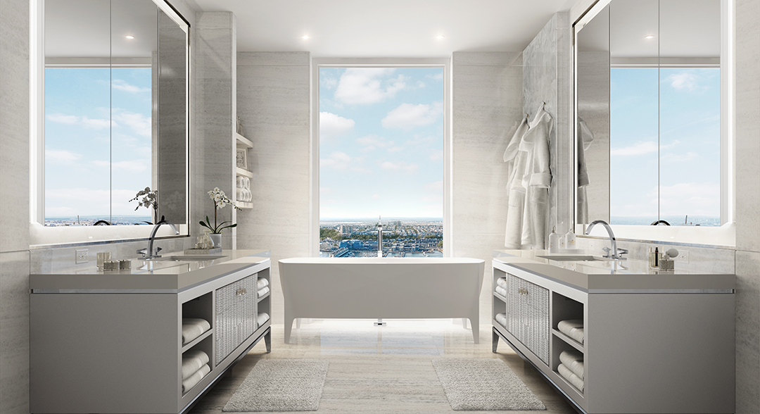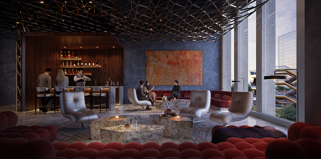 Hudson Yards recently unveiled the neighborhood’s boutique residences at 35 Hudson Yards. Standing more than 1,000 feet in the air, the glass and limestone tower is the tallest residential building in the Hudson Yards neighborhood, featuring architecture by David Childs and Skidmore, Owings & Merrill and interiors by designer Tony Ingrao.The property is comprised of 143 two- to six-bedroom condominium residences, starting on the 53rd floor with stunning views of the Hudson River, Manhattan skyline, the Hudson Yards Public Square and Gardens, and new Instagram-star The Vessel.Residents will also enjoy memberships to the 60,000-square-foot Equinox Fitness Club and Spa and SoulCycle, a full-time concierge and doorperson, and priority reservations to Stephen Starr’s new restaurant concept. Residents will also be away from the Vessel with access to more than 100 shops and restaurants, including New York City’s first Neiman Marcus.The building’s design makes a strong architectural statement with handsome Bavarian limestone shaped into piers and graceful curves that envelop the tower. A series of setbacks twist around the building as it ascends, and the glass helps reflect the panoramic views of the Manhattan skyline.Residences are designed on a grand scale, with two- to six-bedroom homes ranging in size from 1,500 to 10,000-square-feet. Some luxurious offerings include a stunning entryway featuring, a grand living area with expanses of glass, master suites with large walk-in closets, master bathrooms with hand-selected slabs of polished Iceberg Quartzite, kitchens with Gaggenau appliances and opal white marble counters, beautifully finished wood and marble, custom tapestries designed by artist Helena Hernmarck, to name a few amenities.Additional amenities include a corner lounge with billiard table, golf simulator lounge with minibar and access to the world’s most exciting golf courses, boardroom and private office suites, screening room, library, private dining room and children’s playroom. The 24th floor offers the west-facing Grand Terrace and Grand Dining Room, an expansive event space that can host seated events for more than 50 guests.35 Hudson Yards is the second building in the new neighborhood to offer for-sale residences. 15 Hudson Yards, designed Diller Scofidio + Renfro in collaboration with Rockwell Group, is already 60 percent sold.