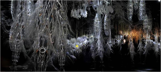 The collaboration between architect and sculptor Philip Beesley, a professor at the University of Waterloo’s School of Architecture, U of W electrical engineer Dr. Rob Gorbet, and British professor Dr. Rachel Armstrong resulted in an installation that explores qualities of contemporary wilderness.