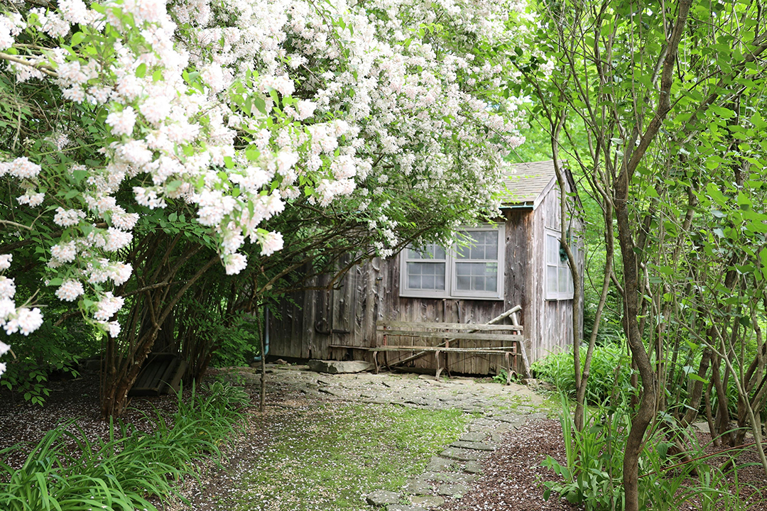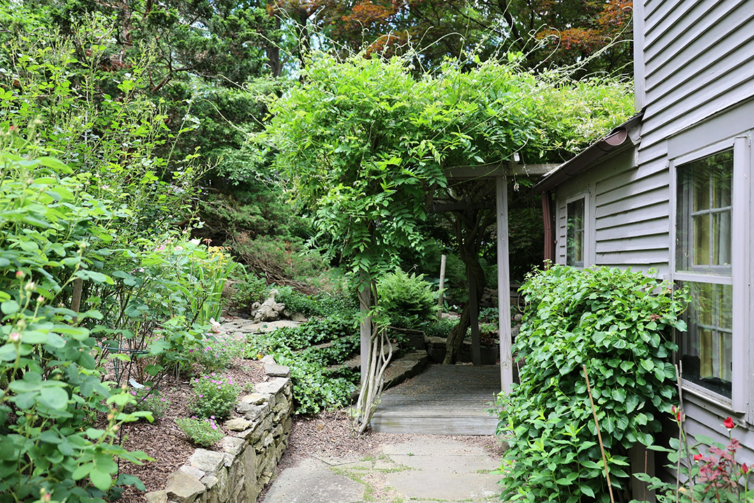 It’s easy to imagine a creative soul such as Mary Travers relishing in the home’s antique aura and beguiling landscape. Tall, thick trees surround the 2,323-square-foot main house and 1,058-square-foot guest cottage, which boasts one bedroom, a kitchen, sitting room, and full bathroom across two levels.