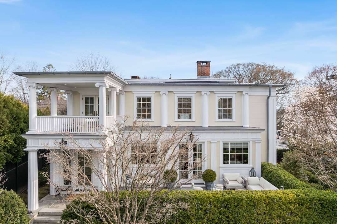 The architect decided to add columns to the exterior, ornamental friezes throughout, and a cupola to the carriage house. Meanwhile, the interior designers thoughtfully filled the 3,488-square-foot interiors with antique furnishings and finishes in tune with the traditional aesthetic.