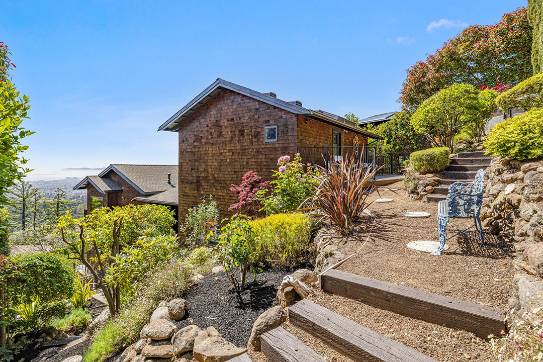 Imagine Dragons has spent years on the road performing, and the internationally-acclaimed band is currently on tour now, in fact. That’s why the band’s longtime bass guitarist, Ben McKee, and his wife, Mary, knew they wanted a calming home where they could decompress from their busy lives and secured this spot in the luscious hills of Montclair, an enclave of Oakland, CA with gorgeous Bay Area views. Now those seeking that same type of serenity can find it on Virgo Road, where the McKees just listed their verdant property for $1.295 million.