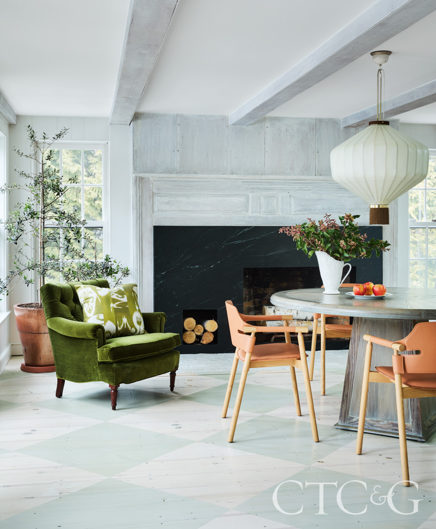 “When I came into the house, you could feel the history,” says the owner of this Greenwich house that has roots in the early 1700s, but was transformed into a grand Victorian in the 1890s, and renovated again at the turn of the 21st century. The family of five loved the house they purchased, but they didn’t want to decorate in an old-fashioned way.