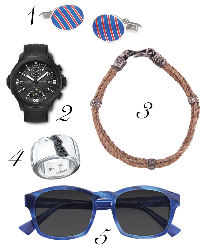 1 Single stripe cufflinks, $395, Brooks Brothers, 48–50 Main St., Southampton, 631-287-3936.
