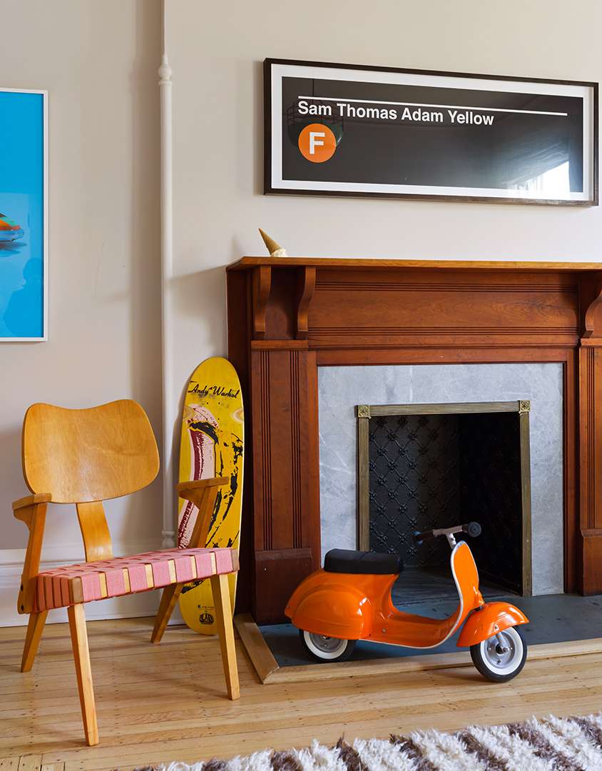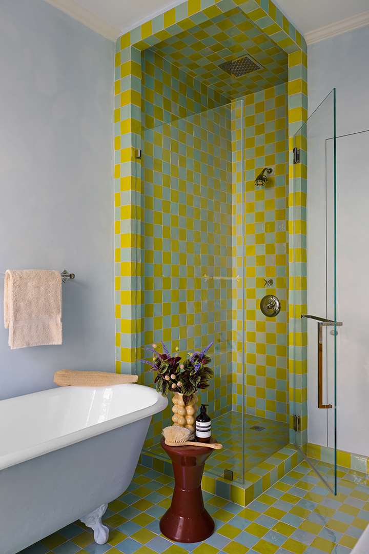 No matter your favorite color, architecture and design/build firm MADE paid close attention to weaving in every hue throughout the 5,500-square-foot home. The entryway gives sort of a graphic retro feel, thanks to the black and white checkered floors, futuristic silver light fixture, and green staircase. Moving throughout the first floor, you can find parsley-colored Ait Manos tiles in the kitchen and orange accents throughout the great room. The styling and decor has been weaved by Hovey Design, who gave the home effortlessly cool layers.