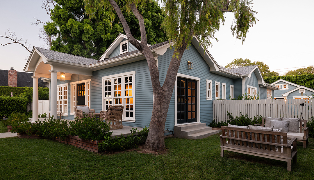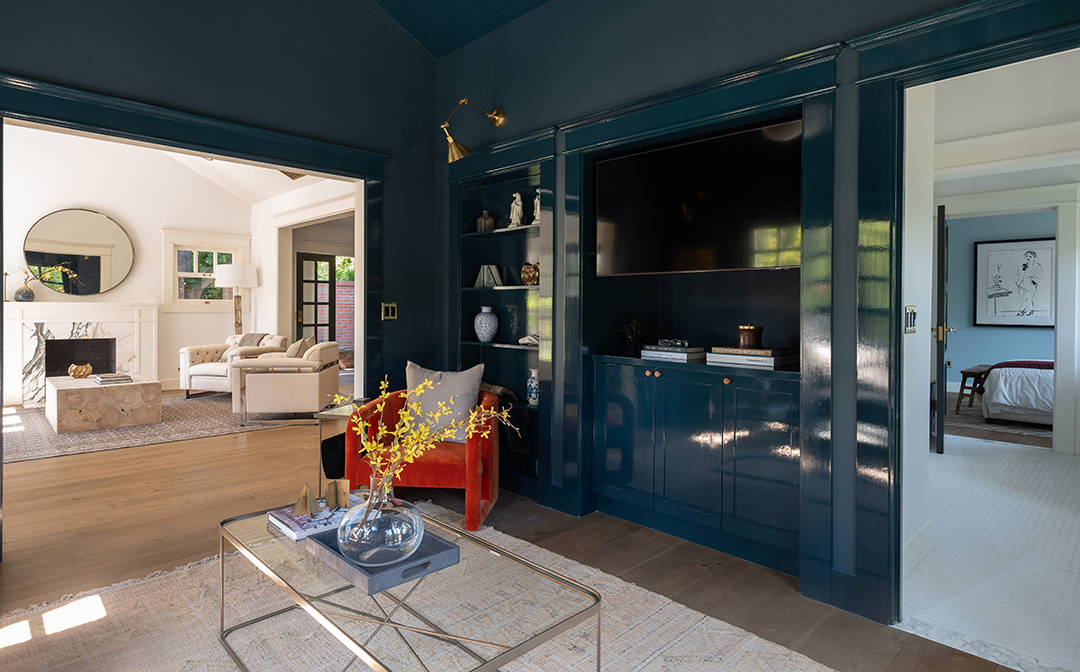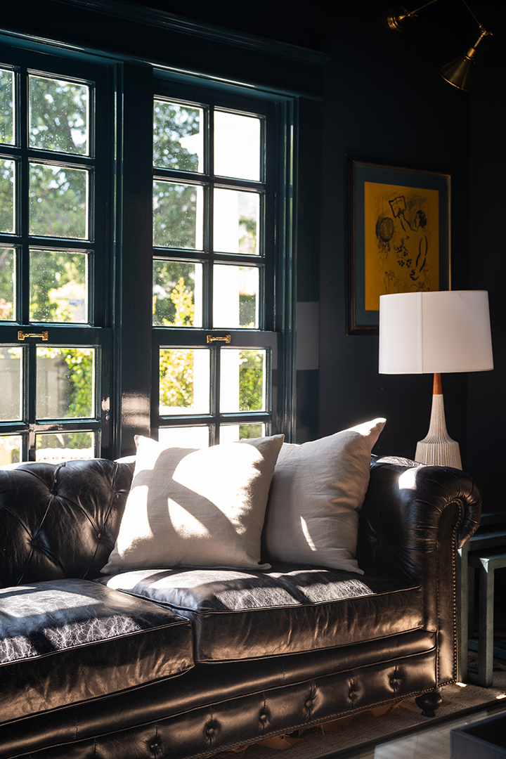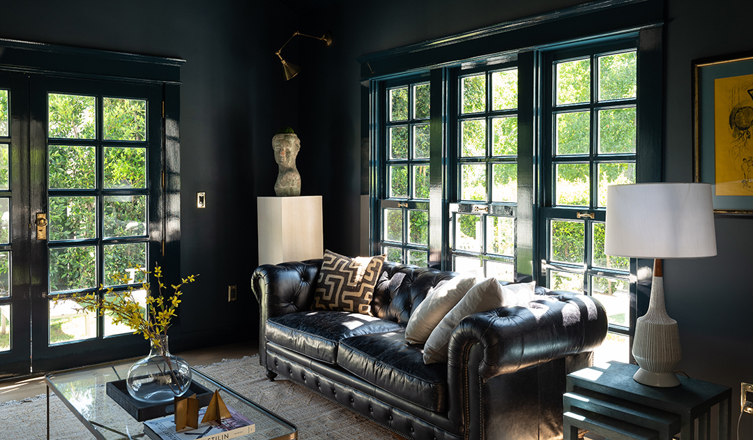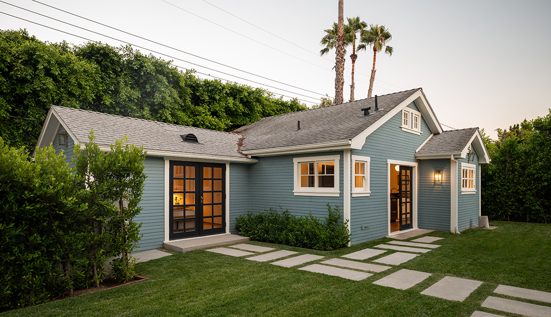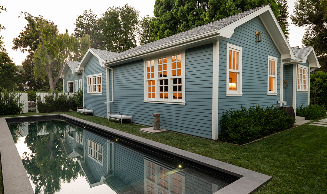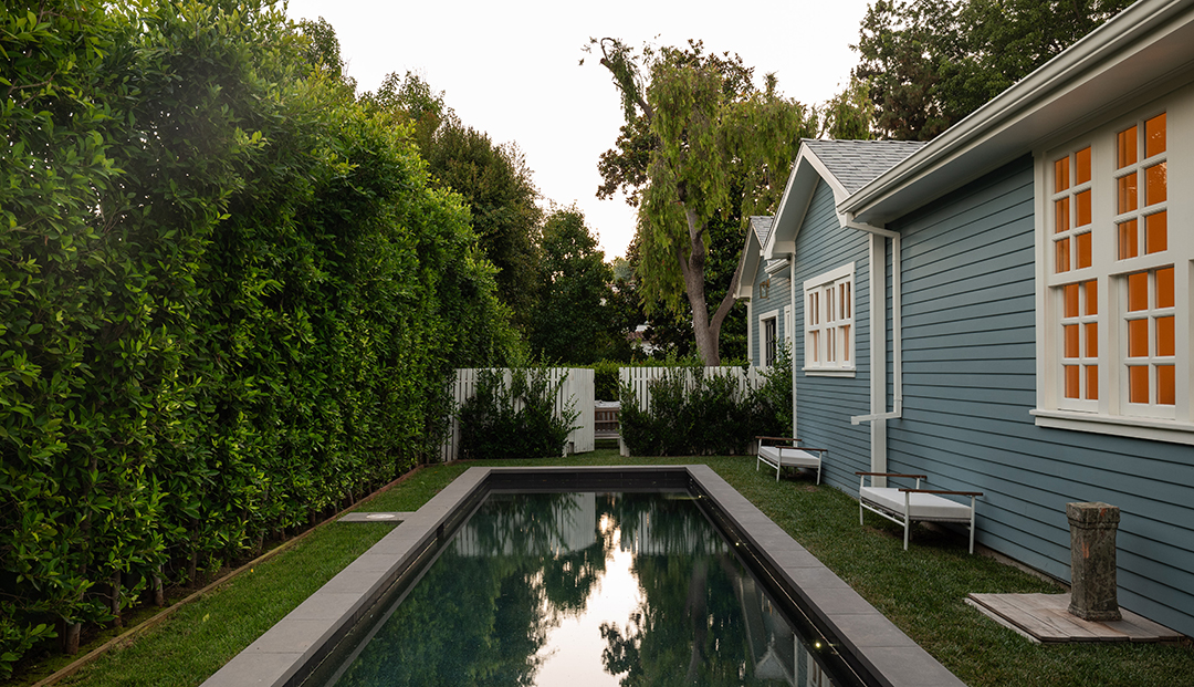 Sitting right near Sunset Boulevard, Chateau Marmont, and Runyon Canyon, it seems destined for a rising star in the entertainment industry. Especially once you start exploring the home itself. The property sits behind gates for optimal privacy and provides a main house and detached guest house with East Coast-style, blue exteriors. Furth took these good bones and elevated the home to new heights, infusing the interiors with a gorgeous blend of fresh and moody sensibilities.