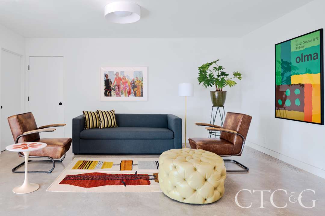 As sited on the sloping property, the house is, essentially, two levels, with a downstairs bedroom, bath and home office serving as guest quarters—accessed via a staircase from the main floor, as well as through an entry near the lap pool. All the rooms are large, but knowing how to furnish them is where Halpern does understand scale and proportion. “I’m a designer who always starts with the function of a room. What’s the room for? What’s needed inside and what’s the simplest version of each element that needs to be there?”