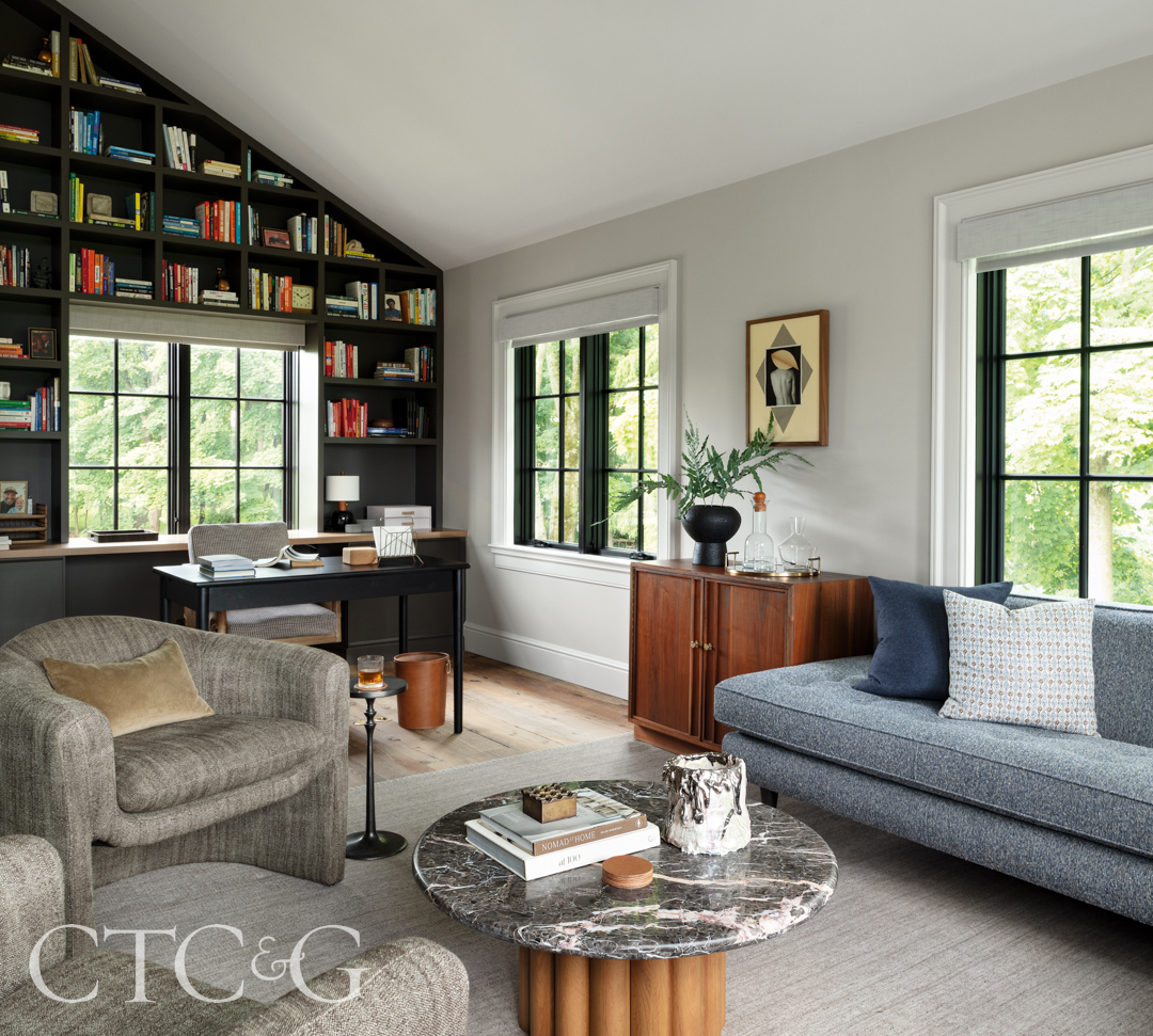 Prior to announcing to the homeowners that they had finished their work, interior designers Liz Slutzky and Joanna Jones of Torus Interiors, and the general contractor for the project, Michael DiMeo of DiMeo Construction, took off their shoes and socks one more time. They walked through every room in the Westport house making sure all was well.