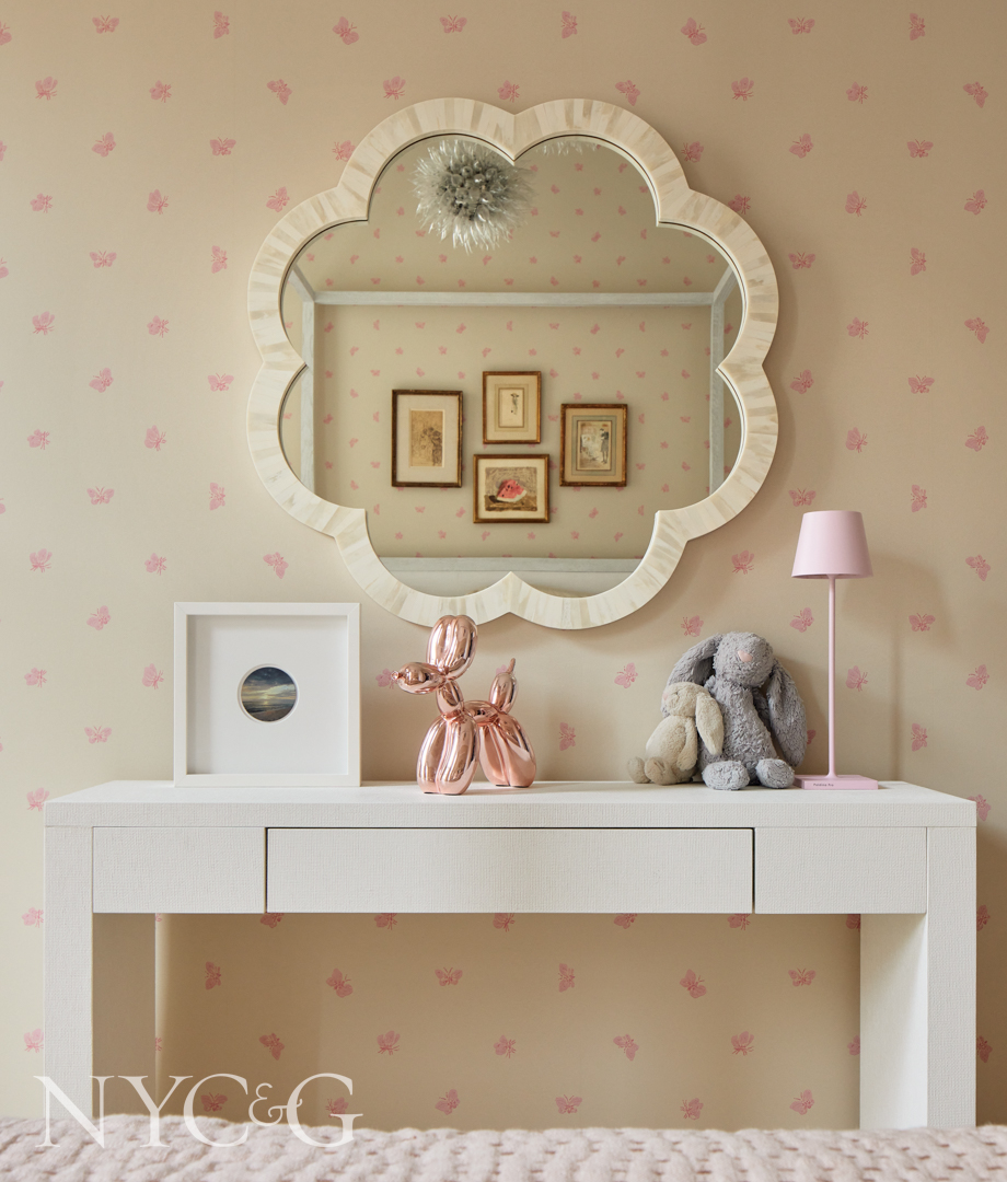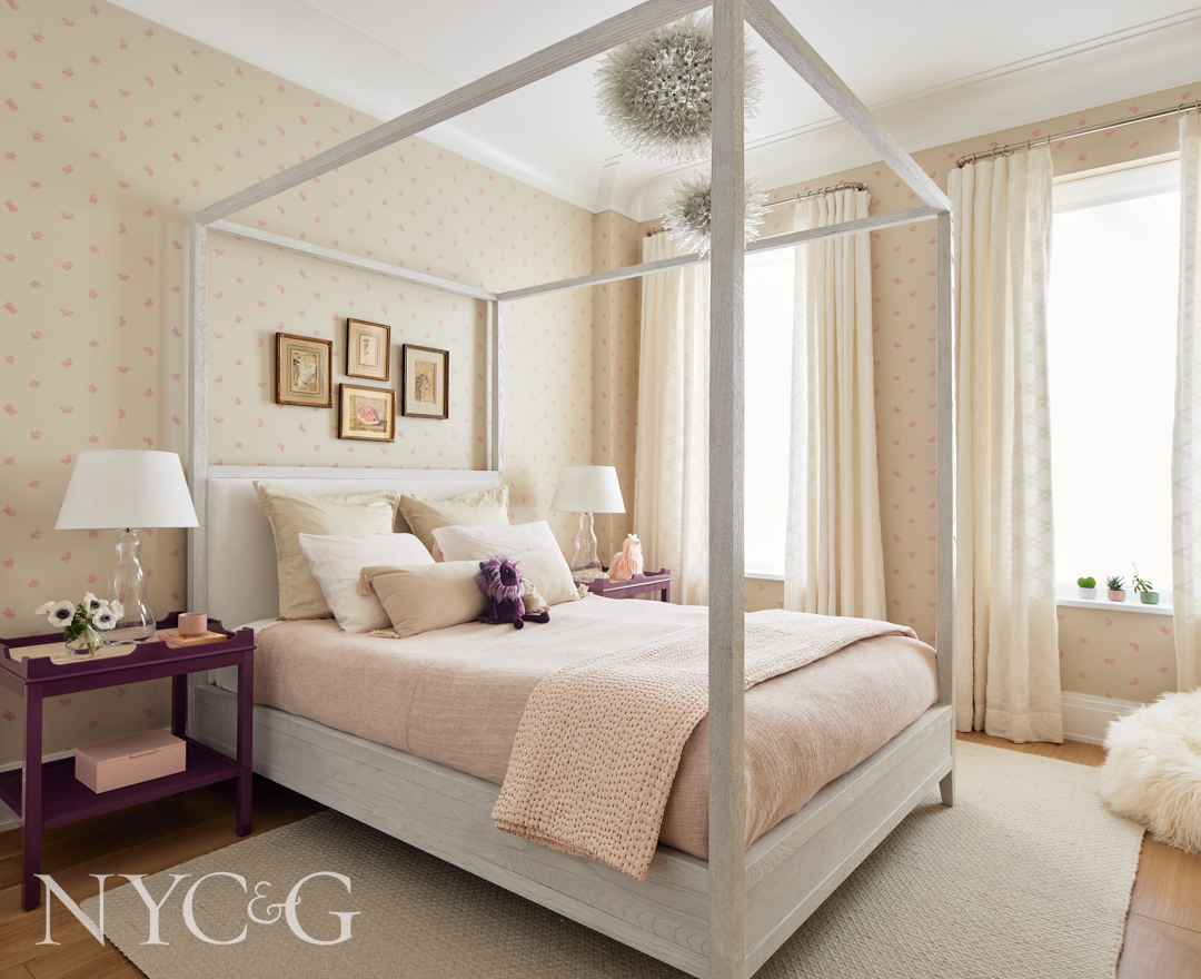 Within shells of floors with 11-foot ceilings, Frey managed to create a chic living room, a defined dining room, children’s rooms, and a cocoon-like primary suite that subtly incorporates a 1940 Josef Frank fabric pattern favored by the client. “The fact that Brian and I were able to change everything one hundred percent is what made this project so fulfilling. It has a wonderful symmetry to it now.”