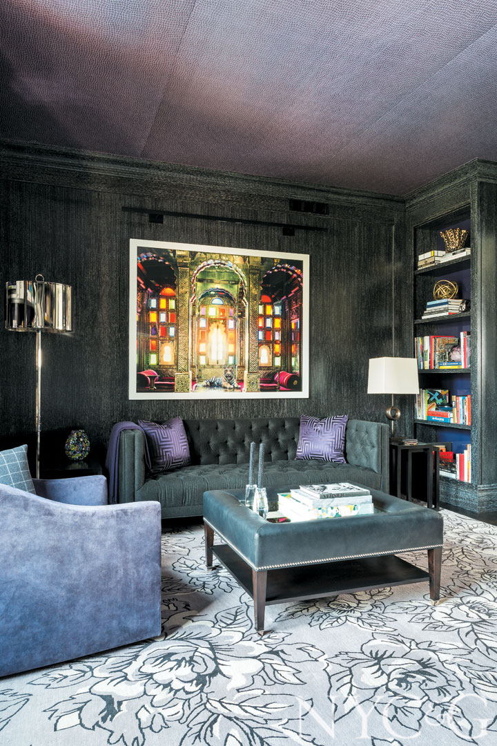 The ottoman in the study is an Eric Cohler design for Lee Jofa; the rug is by Paul Smith for The Rug Company.