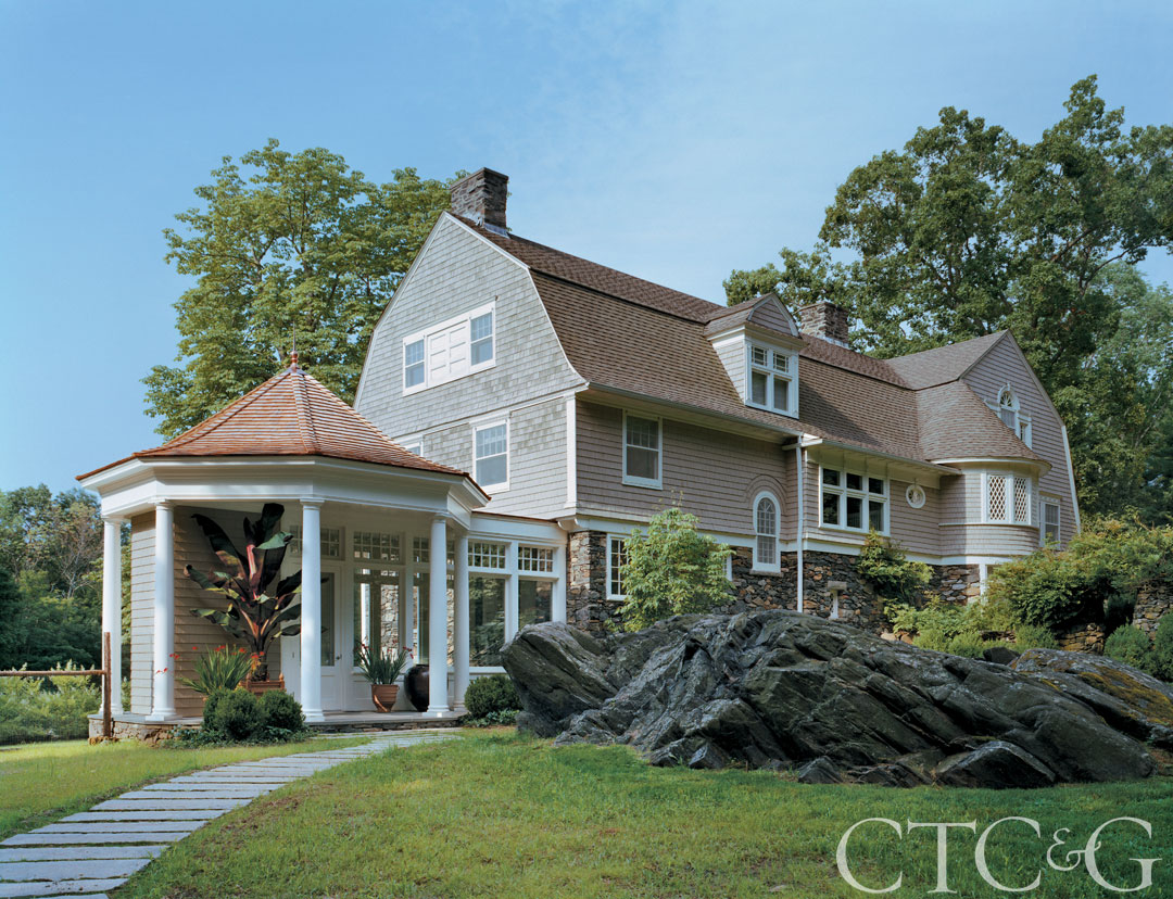 This shingle and stone 1894 Ehrick Rossiter house in Washington blends seamlessly with its surroundings. A new sunroom and attached gazebo were designed to mesh with the original home during renovation and restoration work directed by local architect Reese Owens.
