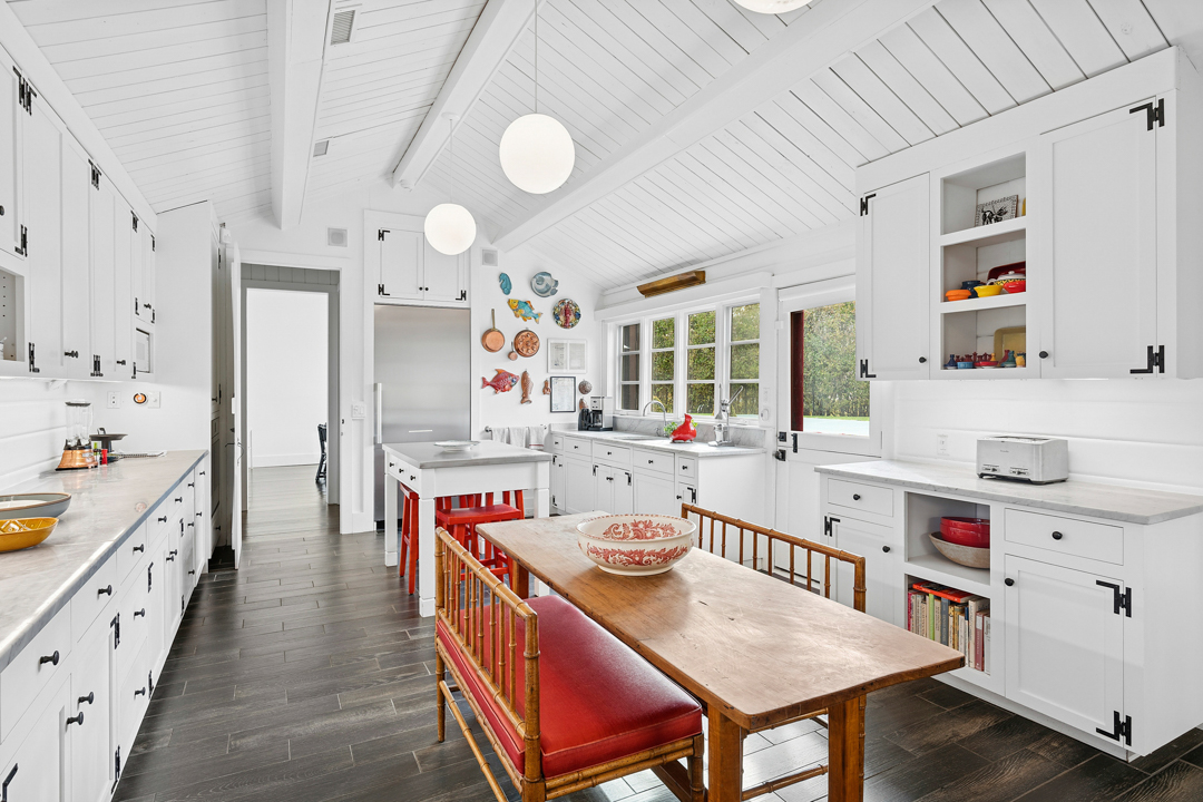 For such a jaw-dropping price, it checks many luxury Hamptons boxes: South of the Highway, pool, close to the beach, and designer-curated interiors. Set on a manicured acre, the 6,000-square-foot home unfolds with five bedrooms so you could share it with friends and family. New York City-based designer John Barman is behind the chic interiors, which are playful and inviting. Light floods through glass doors in the colorfully outfitted great room, the eat-in kitchen has top-of-the-line appliances, and there are unabashed pops of color throughout the home. The expansive primary suite with vaulted ceilings is perhaps the most relaxing room inside, while the backyard also promises idyllic tranquility.