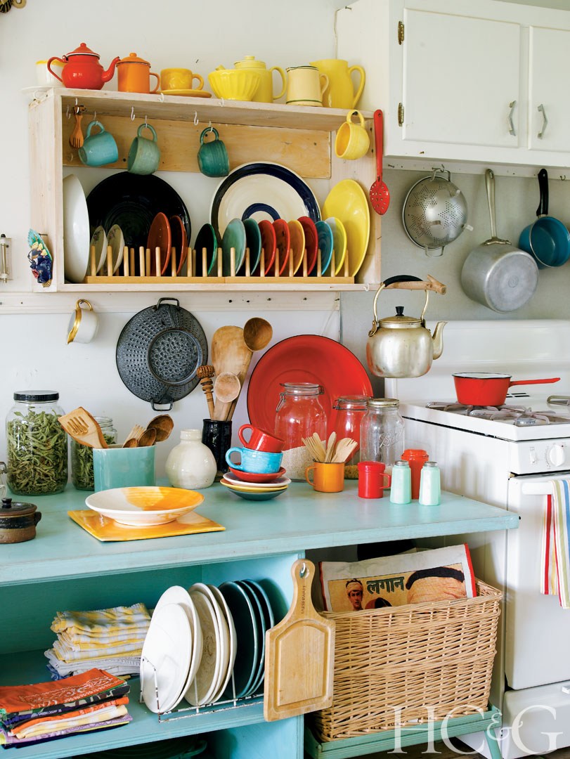 Heilmann’s handmade ceramics comfortably coexist with vintage flea-market finds.