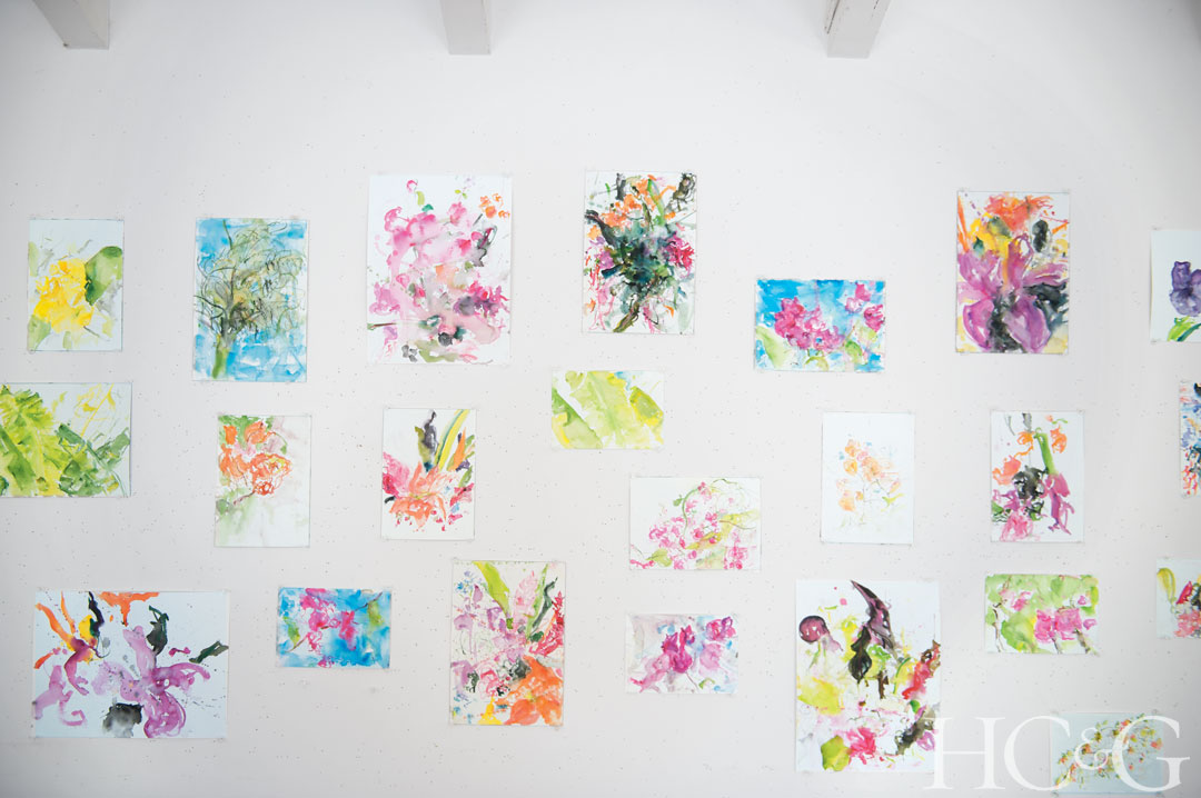 Some of Harm’s smaller works which he tapes casually to the wall for inspiration.