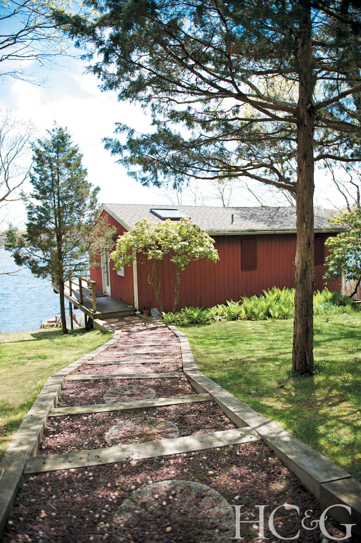 The cottage is sited above Little Fresh Pond.
