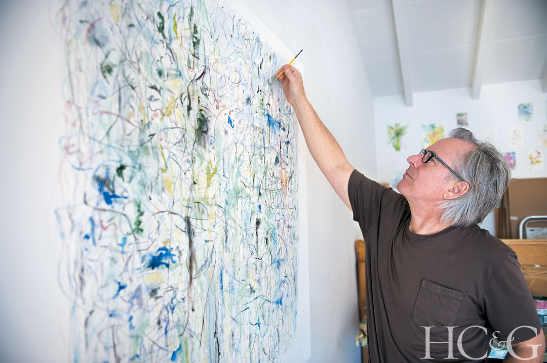 The artist has carved out of the upstairs level of his two-story cottage in Southampton.