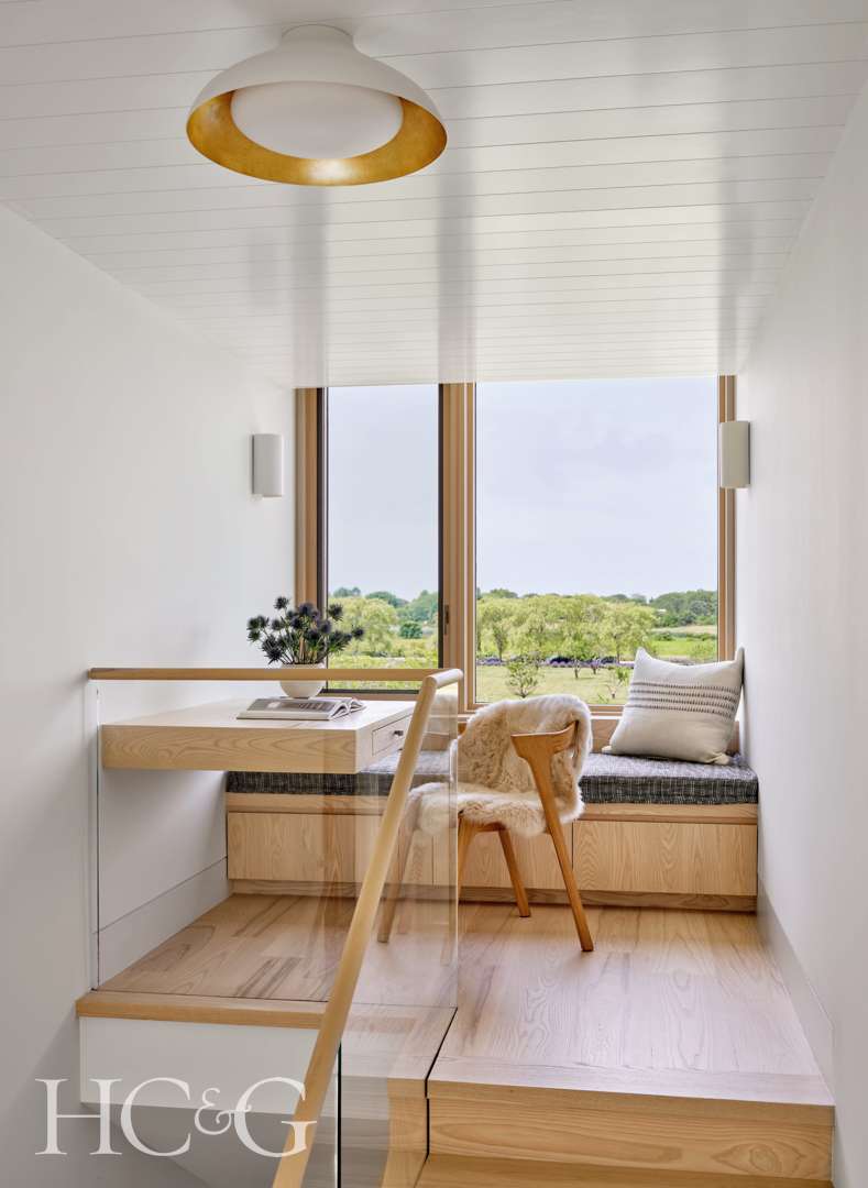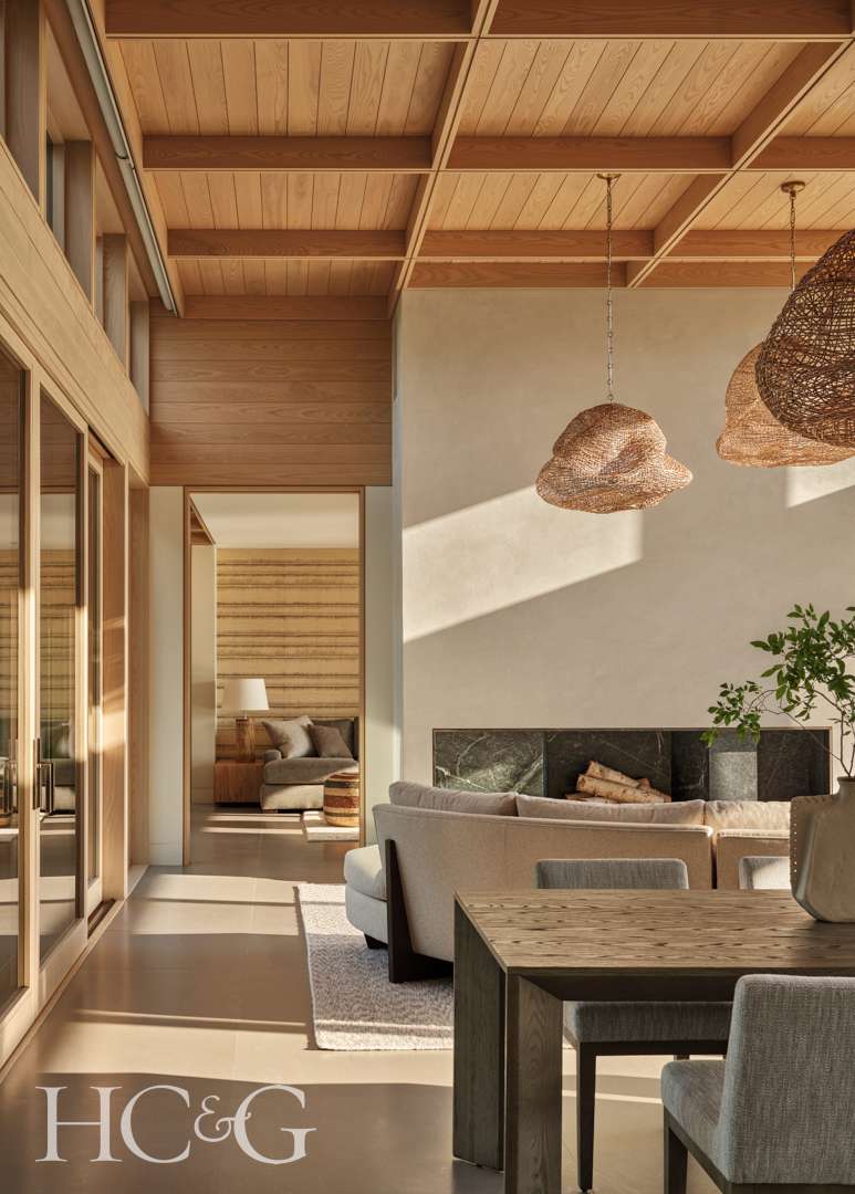 Indeed, Janara and Steve both admit to conceiving every residence based first on a “diagrammatic process, rather than one based on style,” as he says. Each of the two wings contains three bedrooms, with a downstairs floor plan that is immediately logical and discernible. They even echoed their rectilinear plan on the ceilings, fashioning what the interior designer for the project, Kathryn May, calls, “a modern take on the traditional coffered ceiling.” As Steve emphasizes, “The ceiling is dissected into the same module gridwork as the house itself.”