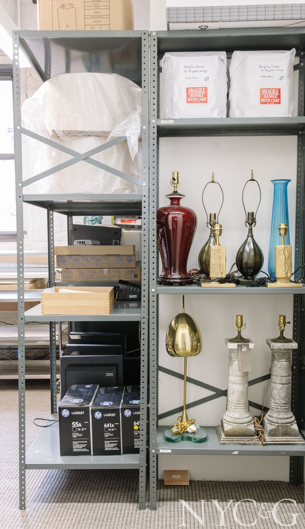 A storage room holds product samples and accessories.