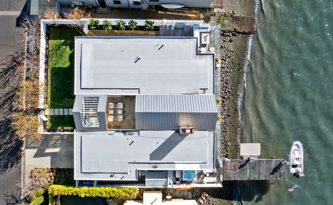 “Three things really stand out about living on West Shore Road,” seller Pam Robertson says. “Barbecuing and spending time on the deck with views stretching from the Golden Gate Bridge to Mount Tamalpais is pretty spectacular. The sea life is incredible. Richardson Bay is part of a migratory flyway, so the birds, seals, and fish we see every day make it feel like we’re living in a protected national park. And, the sunsets are absolutely stunning.”
