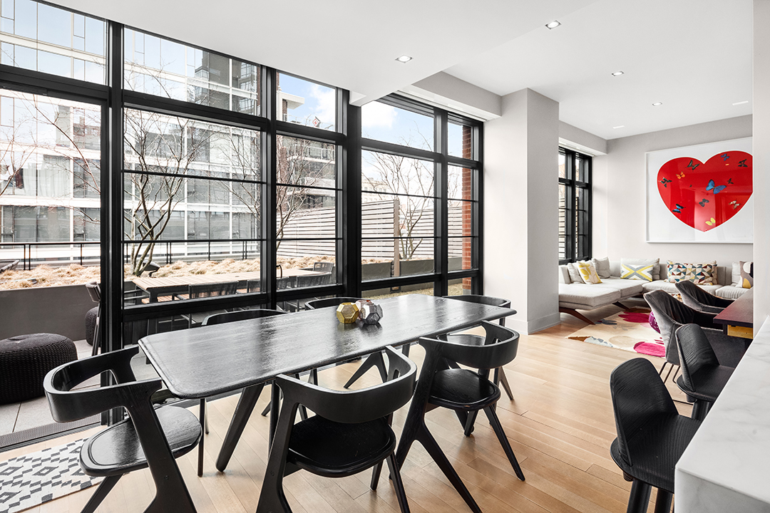 Spanning 33,000-square-feet of space, the airy apartment consists of four bedrooms and four and a half baths. Of course, being owned by Keledjian, the home is dressed in contemporary, chic interiors. The bedrooms are tucked away on the second level, leaving the first floor as the fashionable entertaining space. An outdoor terrace is perfect for bringing the party outside and allows endless amounts of natural light to flow indoors through massive windows. Another terrace is off of the master bedroom, making for relaxing views of the city’s skyline.