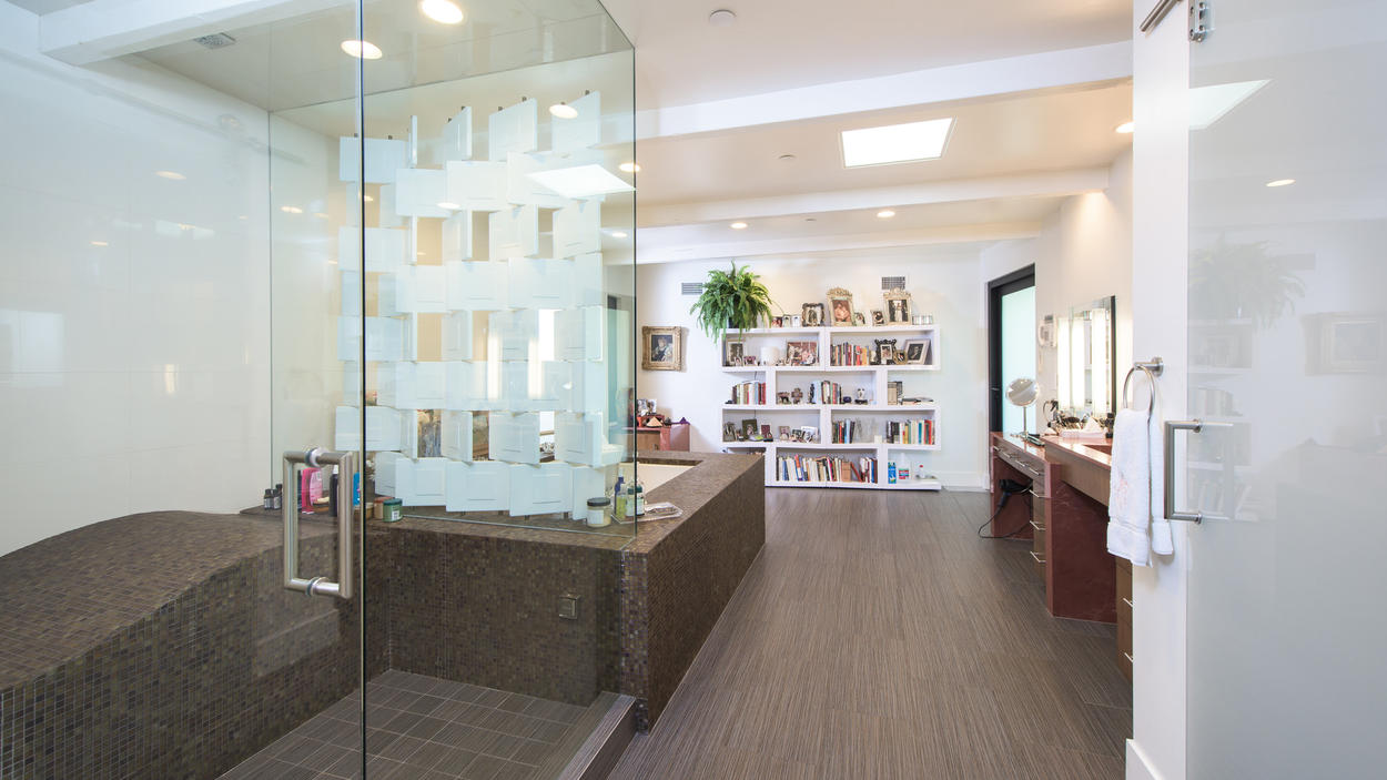 Actress Jane Fonda and music producer Richard Perry have listed their contemporary home in Beverly Hills for $12.999M with Coldwell Banker Previews International’s Jade Mills and Valerie Fitzgerald, the LA Times reports. Perry and Fonda have owned the home for 5 years; they bought it in 2012 for $7.3M. It is sited on a .75-acre gated property in the Trousdale Estates area and was built in 1961. 7,500 square feet of interior living space are spread over multiple levels, all of which are accessible via a glass elevator in the center of the home. The updated chef’s kitchen features an oversized island and bi-fold glass doors that open to a terrace. Other notable features include a recording studio, media room and diner-style wet bar. There are 4 bedrooms and 7 bathrooms total, and the master suite features a separate sitting room and office. Outside, there is a solar-heated pool, a covered patio, a meditation garden and a fire pit.