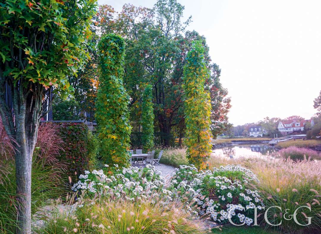 “This is a unique rural maritime setting just 30 miles from the City,” says Parker. “On the one hand, you have mud flats, but it’s beautiful at high tide. There are snowy egrets, blue herons, fish and crabs jumping out of the water. There is the background of stunning sunsets and water views. You have a great summer and fall. But snow and ice storms do-in the grasses.”