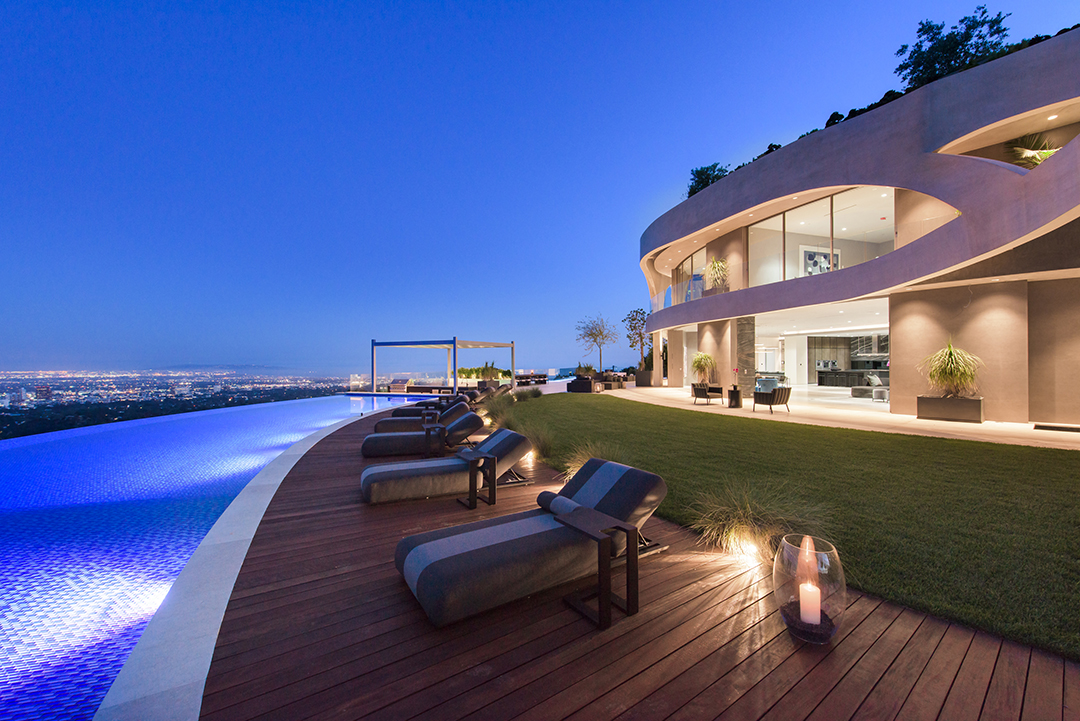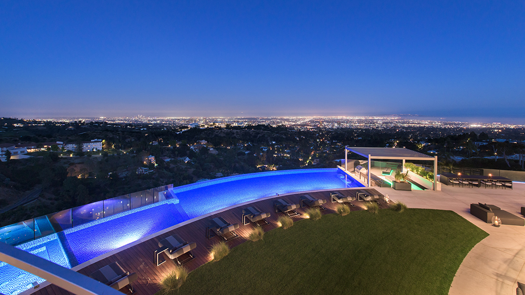 Only Brentwood could have a house this amazing without feeling over-the-top. While missing the helipad indigenous to its name and James Bond signature, 12255 Sky Lane has virtually everything else for the ultimate in lifestyle. The cutting edge architectural design by de Loren & Associates complements the panoramic views from downtown L.A. to the ocean. Positioned with distinct curves that integrate the home into the hilltop property, the 16,700-square-f00t three-level megamansion fulfills every dream for $36 million.
